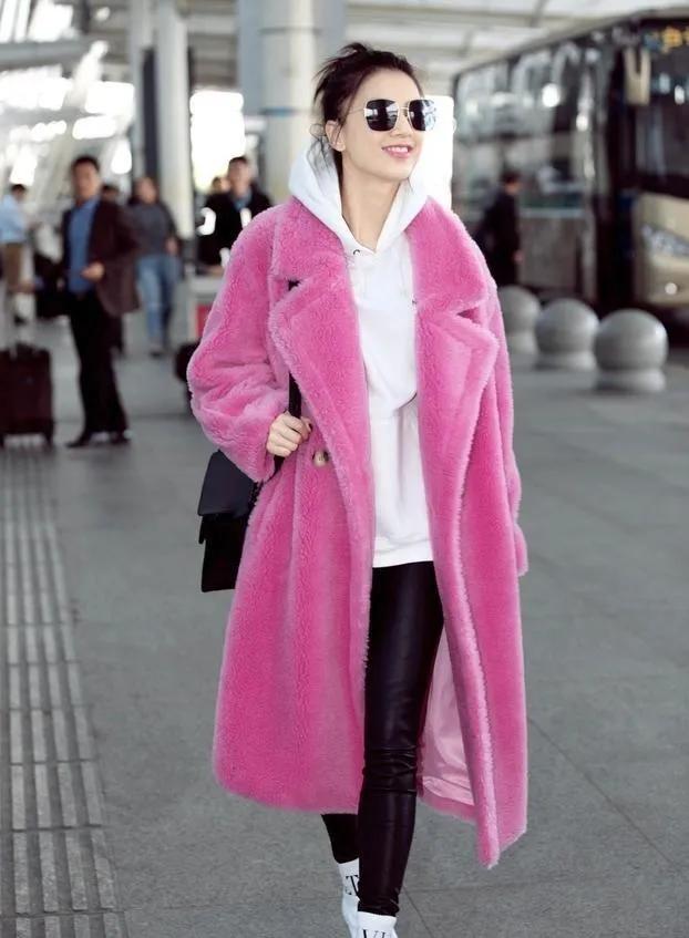 黄圣依的状态,真的回春了! 这件亮眼的粉色毛绒大衣,被她穿出了满满的活力。 内搭一件简约的白色连帽卫衣,下身搭配黑色皮裤,色彩上的鲜明对比让整体造型既保暖又时尚。 再加上高扎的马尾,整个人看起来清爽利落,减龄效果十分明显,完全看不出岁月的痕迹。