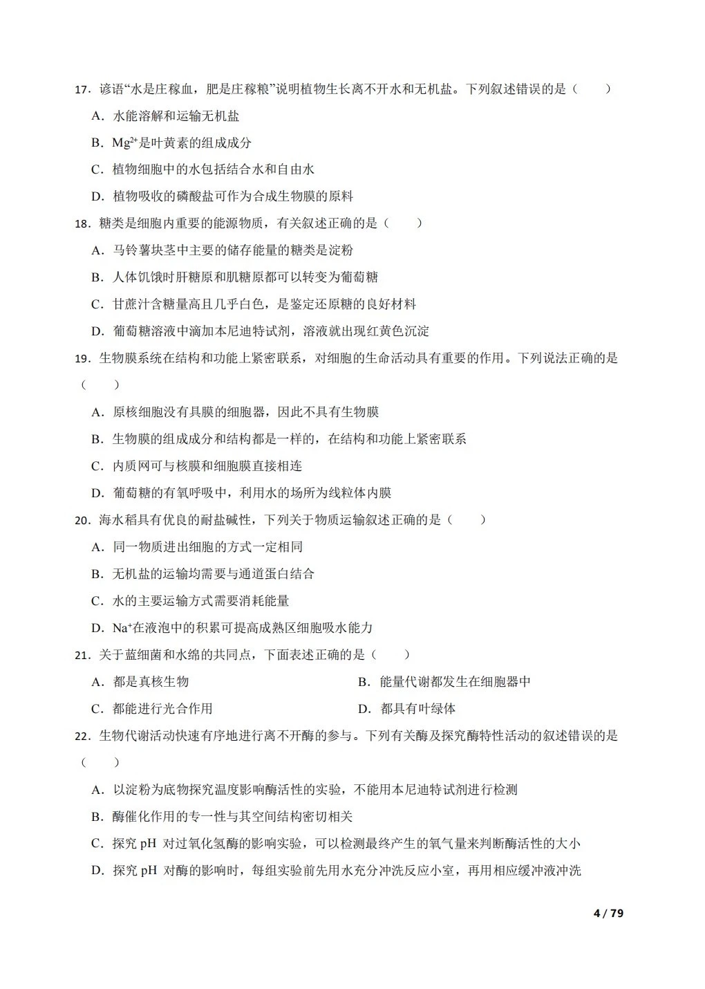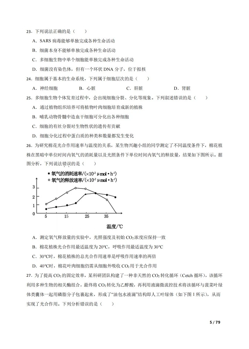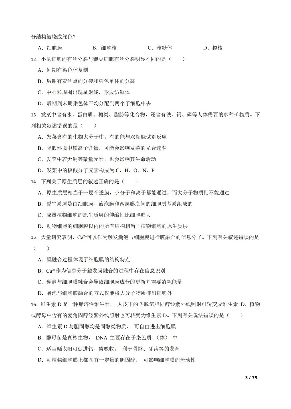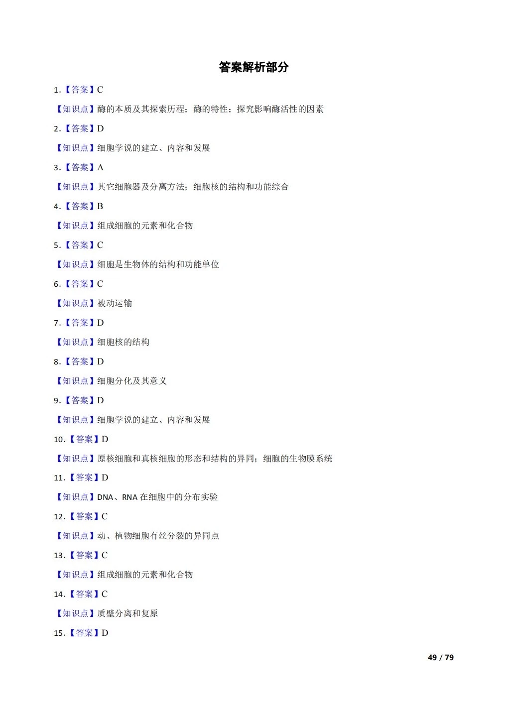 高中生物复习100题:分子与细胞