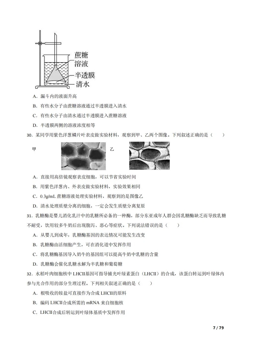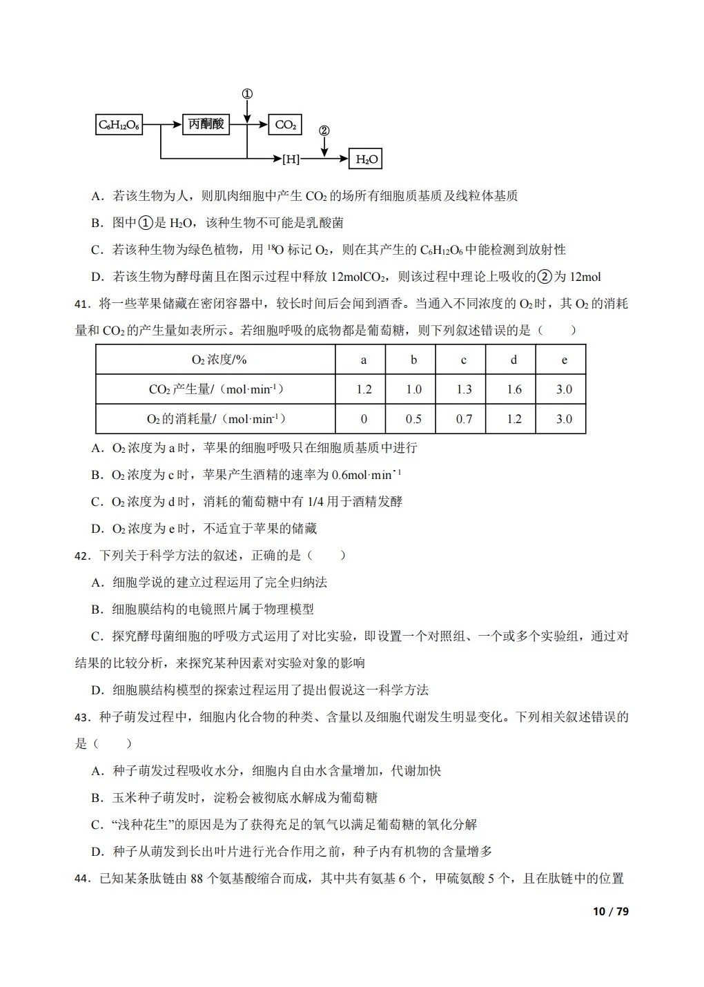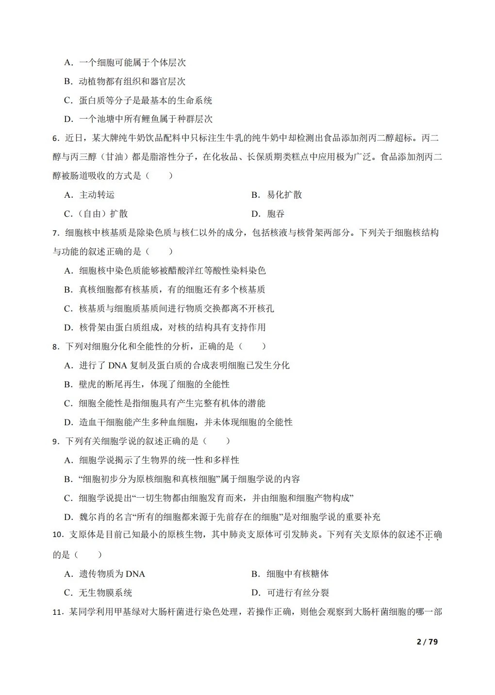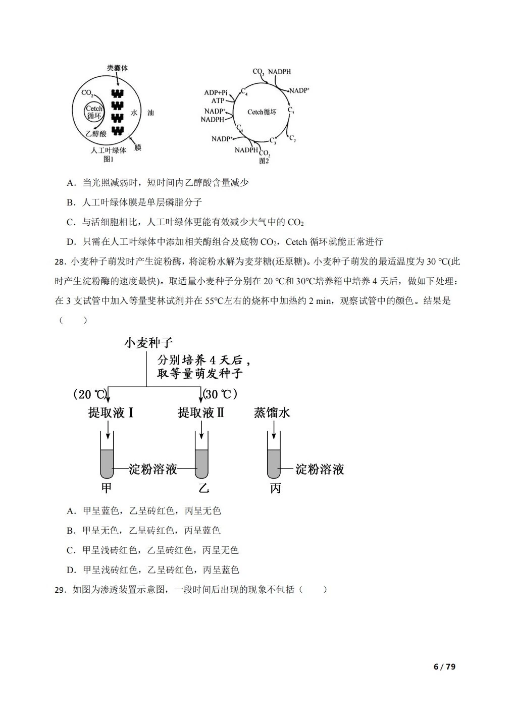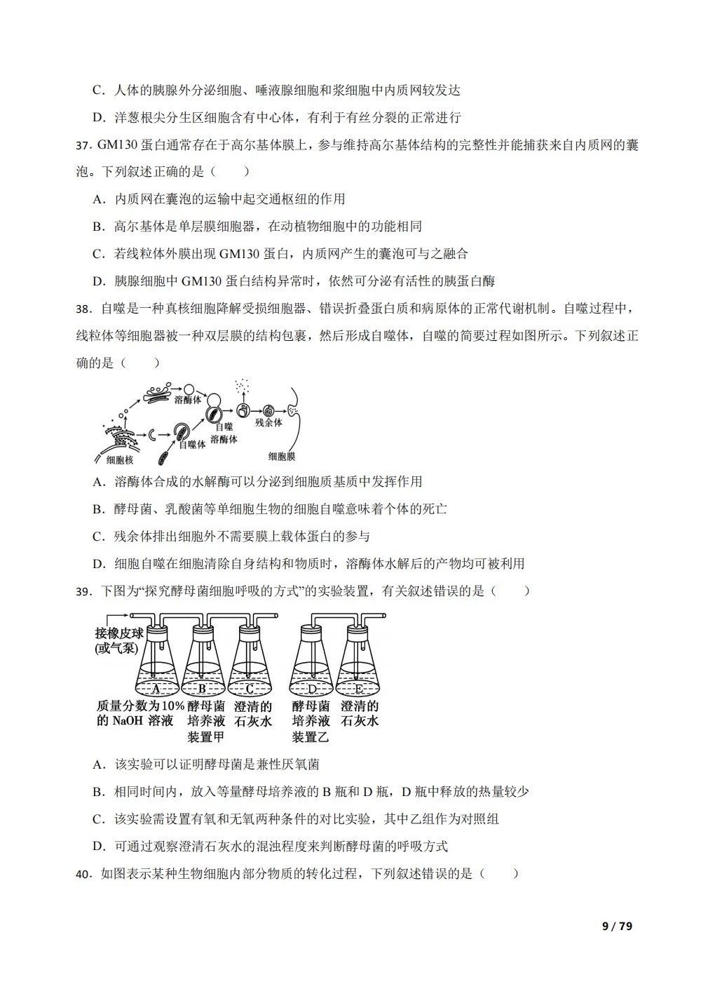 高中生物复习100题:分子与细胞
