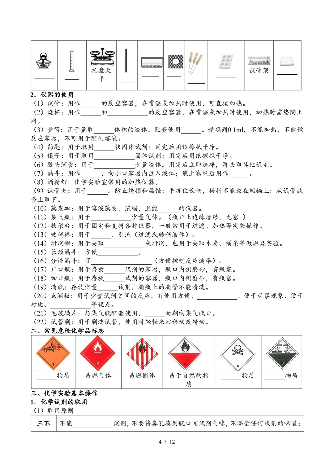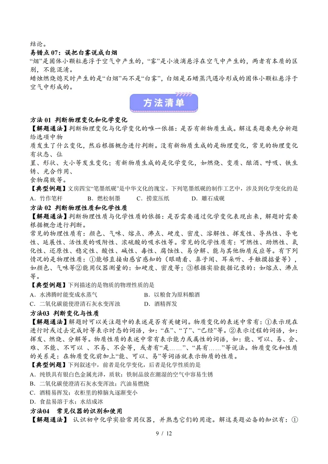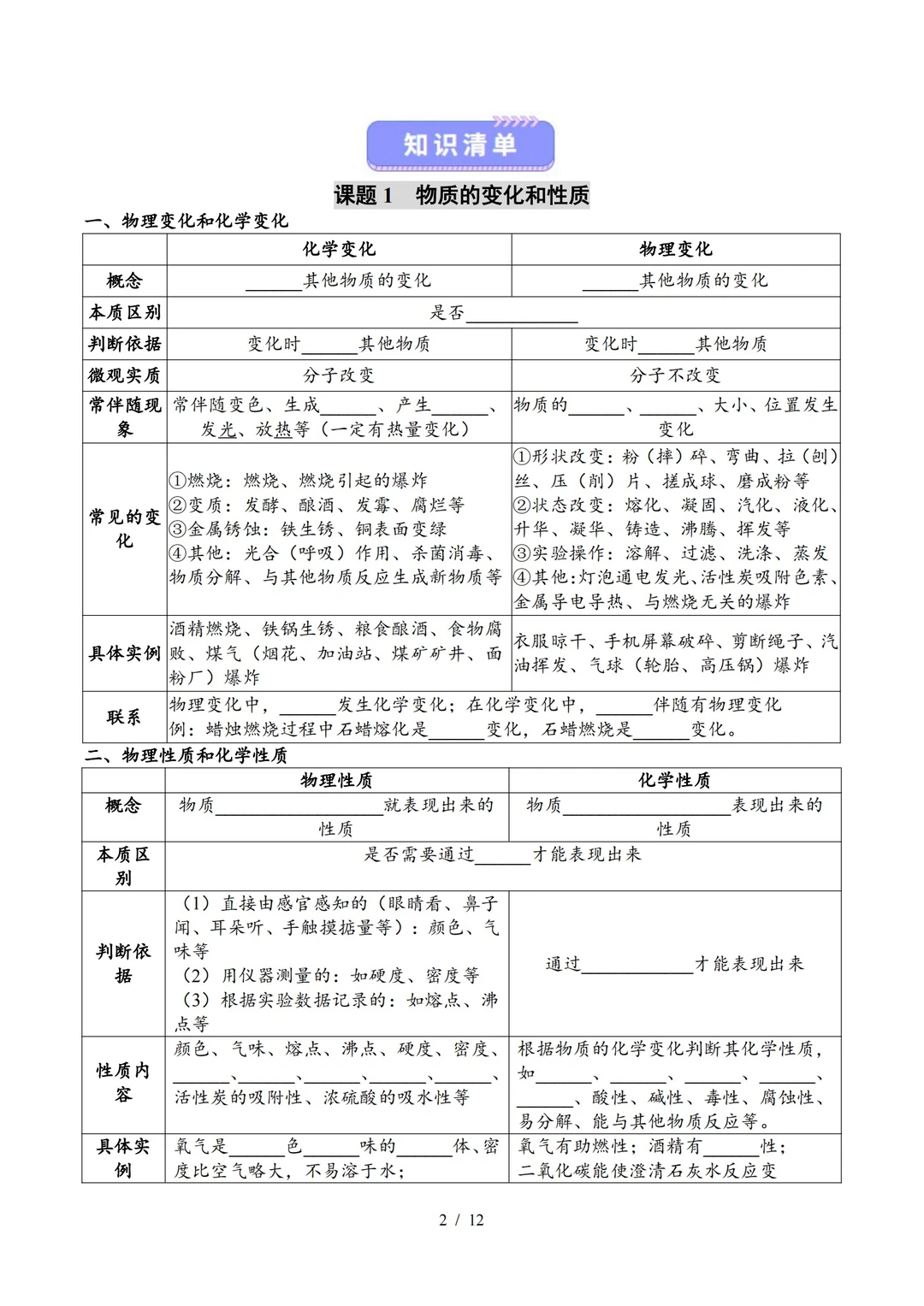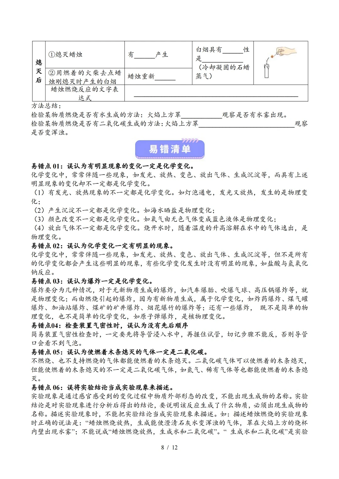 九上化学知识清单1