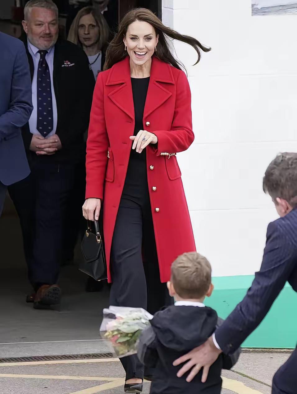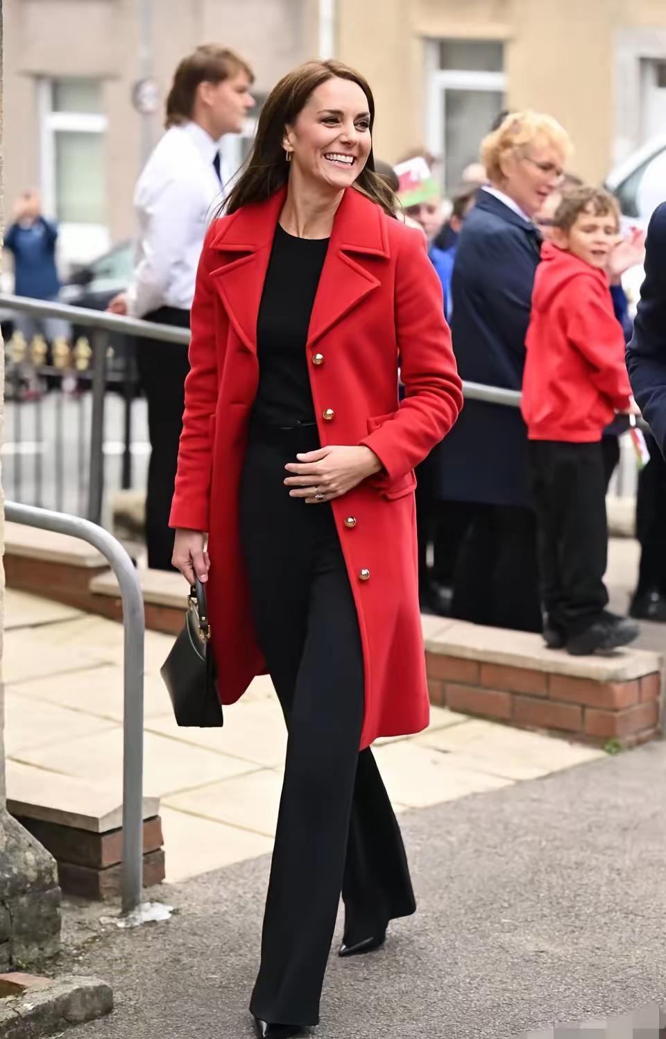 凯特王妃的红色大衣配黑色内搭真的好高级,干练又不失优雅。每次的造型凯特王妃总能和她婆婆一样拿捏的很准,能在第一时间把人们的摄像头“抢”过去。优雅的棕色长发配上甜美的微笑,真的太喜欢王妃婆媳两个人啦。凯特穿搭