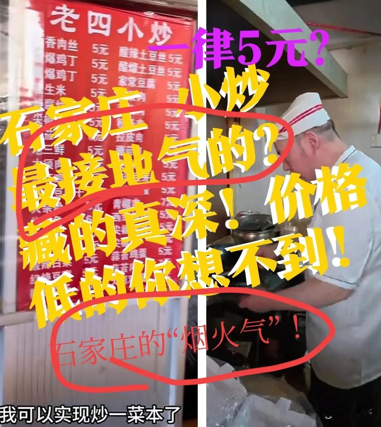 【石家庄“最接地气”,5元小炒】不好找啊!位置在哪呢?石家庄的小炒,太接地气了!好多都是5元!位置藏的真深!价格低的你想不到! 这里藏着石家庄的“烟火气”!位置在哪呢?在西三庄菜市场的一个角落里!不知道的还真找不到!也是好多年了,老地方,老手艺,老价格,老顾客们去吃的比较多! 老四小炒,名气还真的挺大!这个老四小炒,吸引了当地和外边各地的探店主播,争先探访!这里也成了各个专业的“吃货”的宝藏打卡地! 不过,网友也有不同看法,关心起卫生问题说,物价不说了,能不能建议老板,把餐具换成盘子,别用塑料袋,哪怕是铁盘子上面铺个吸油纸也可以啊!哪怕是一份菜多个2块钱也可以,真的特别不卫生。不过也有网友说,现在这儿吃的顾客,都是来享受“人间烟火气”的!宁愿要塑料袋也不会多花一两块钱,要的就是“接地气”的味道!要不然他也不来这个店里!这么便宜,就算自己家不买菜了,中午来这里炒六个菜也就是30块钱,打包回家可以吃到晚上,多么惬意! 带定位晒今日生活 石家庄代表美食 信息图片来源网络侵权联删