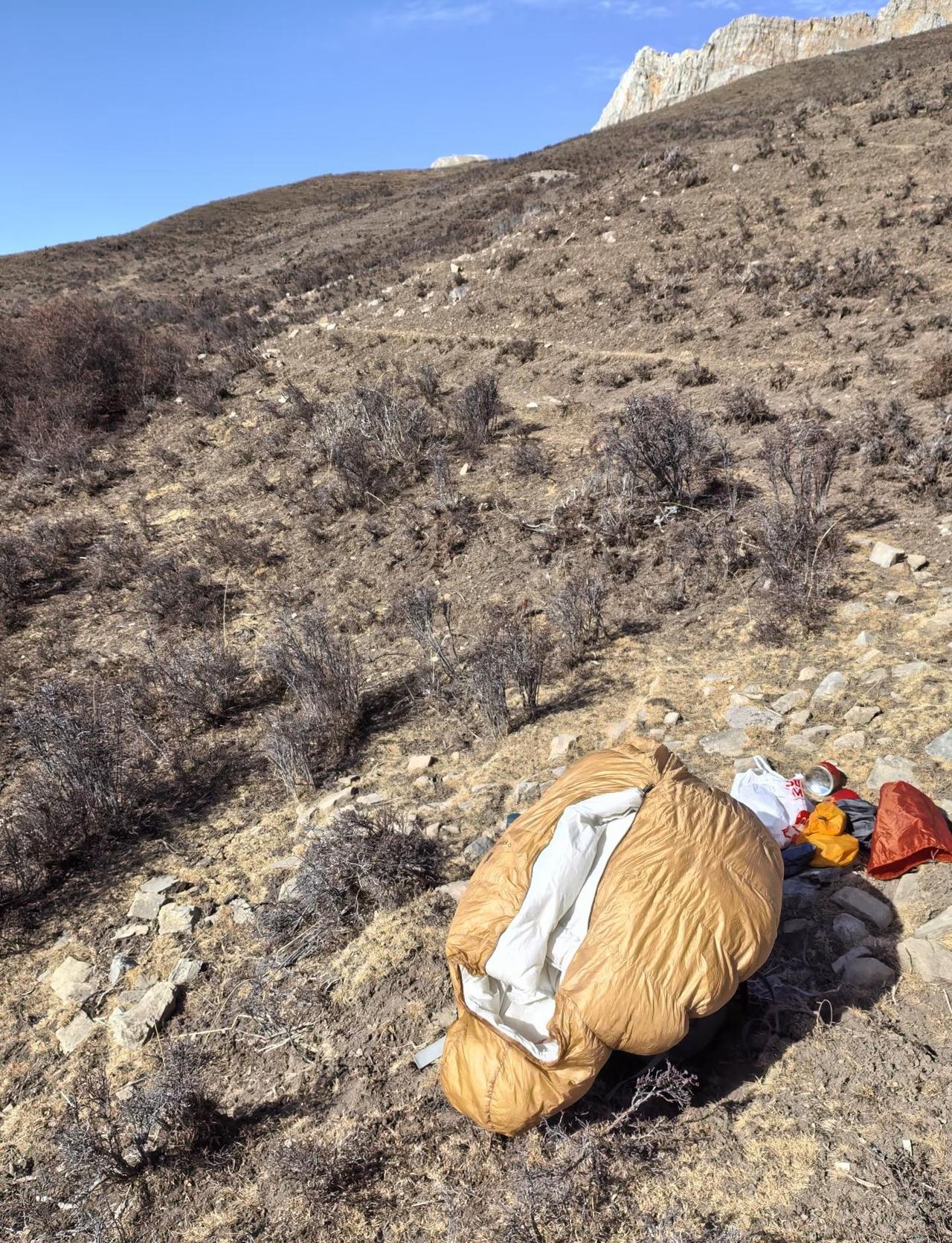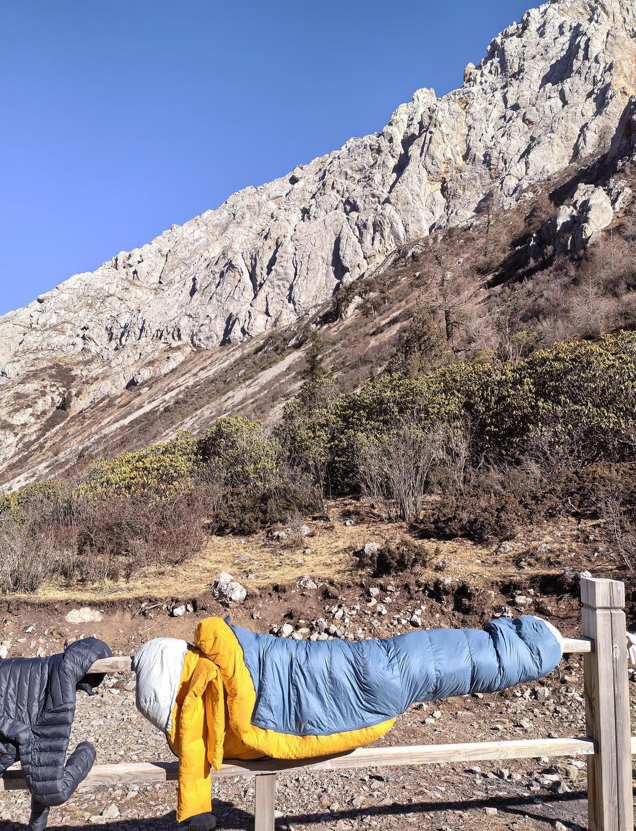 重装长线徒步 晒睡袋是必修课 尤其是冬季,呼出的水汽必然在睡袋胸口结霜或者凝露。短途露营一晚那种可以回家晾晒睡袋,长线就要抓住机会晒睡袋,否则连续两三晚的水汽进入睡袋影响蓬松降低保暖。 好在冬天的高原几乎每天都大太阳,中午路餐时候顺便晒一下,二三十分钟就够晒干睡袋。 你们有过晒睡袋的经历吗?