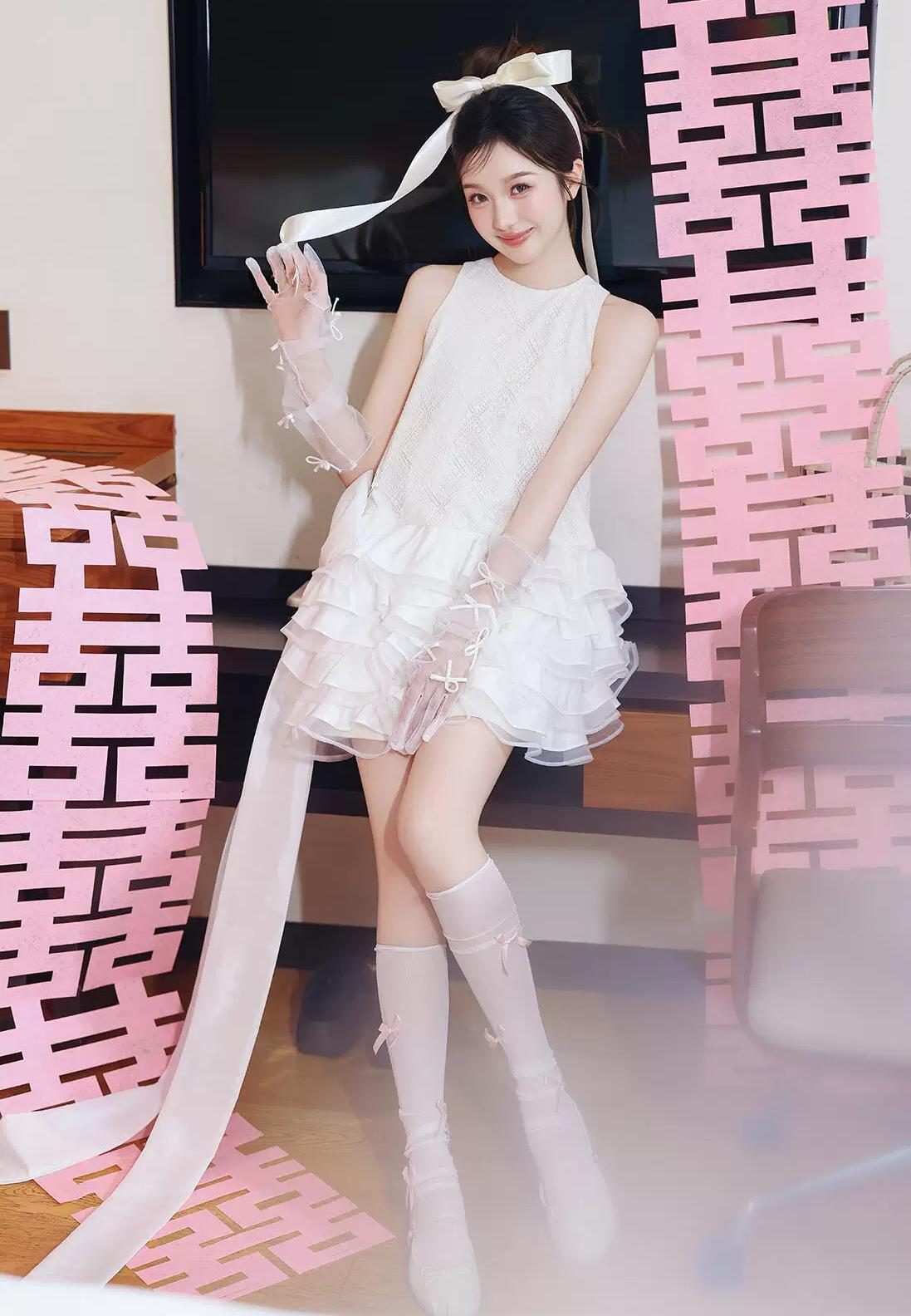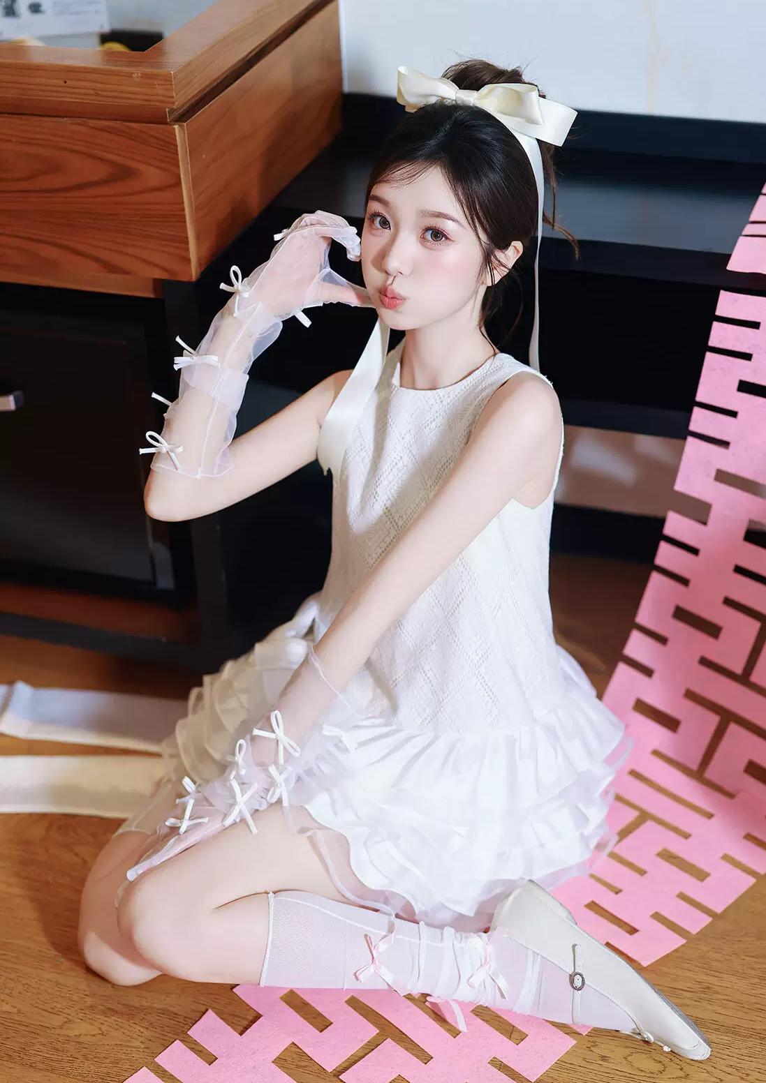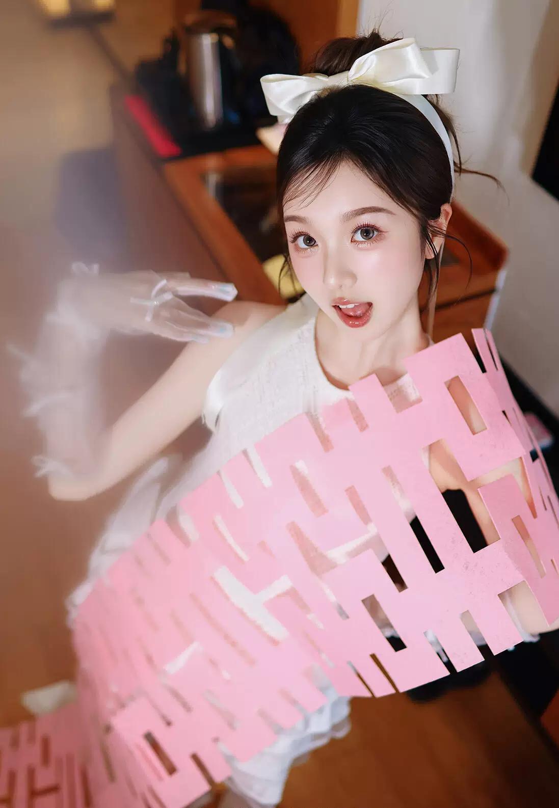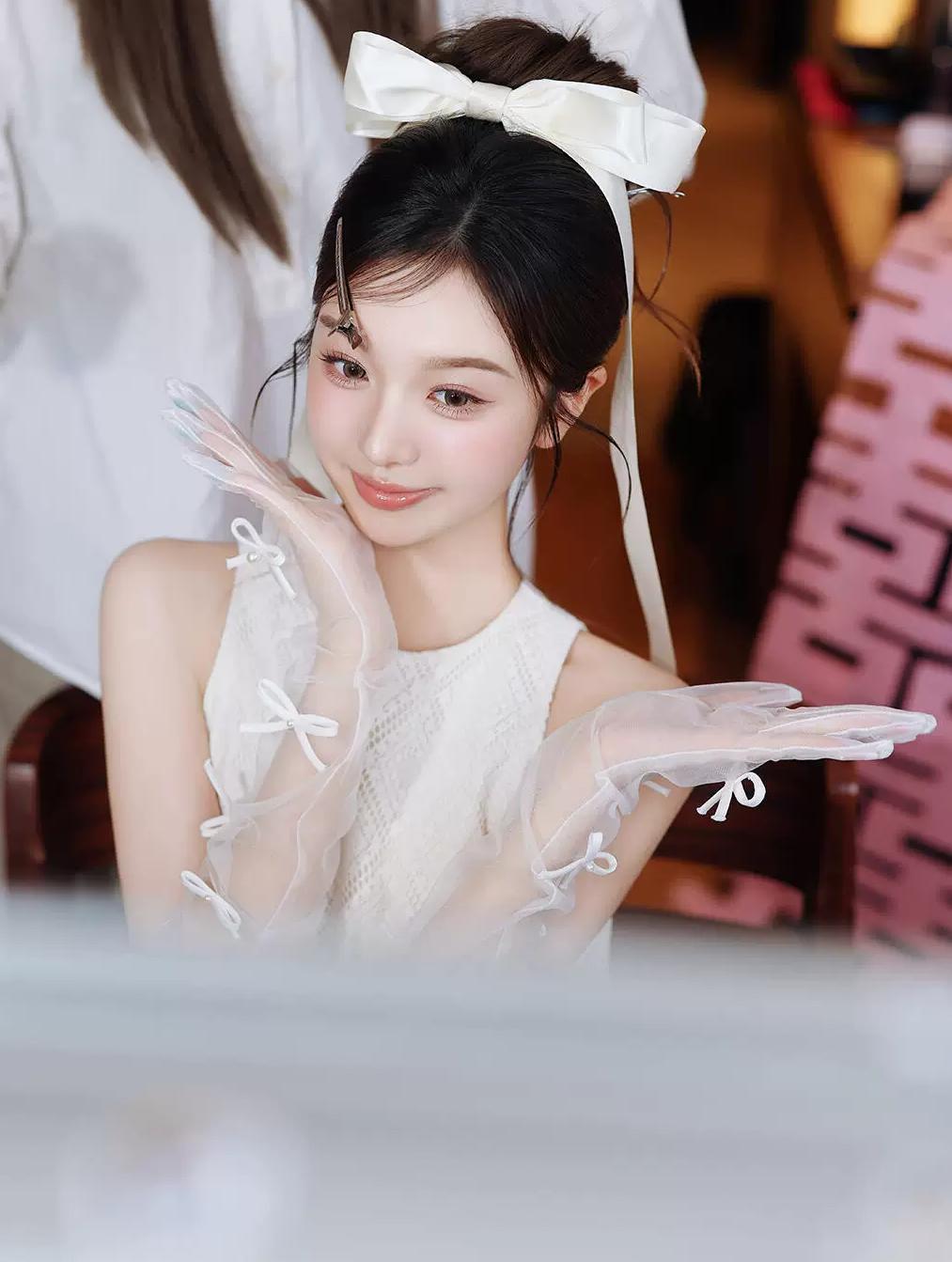 碎花裁作玉人身,长发垂波绝俗尘。 眉眼宛然秦氏影,风姿惊煞世间春。