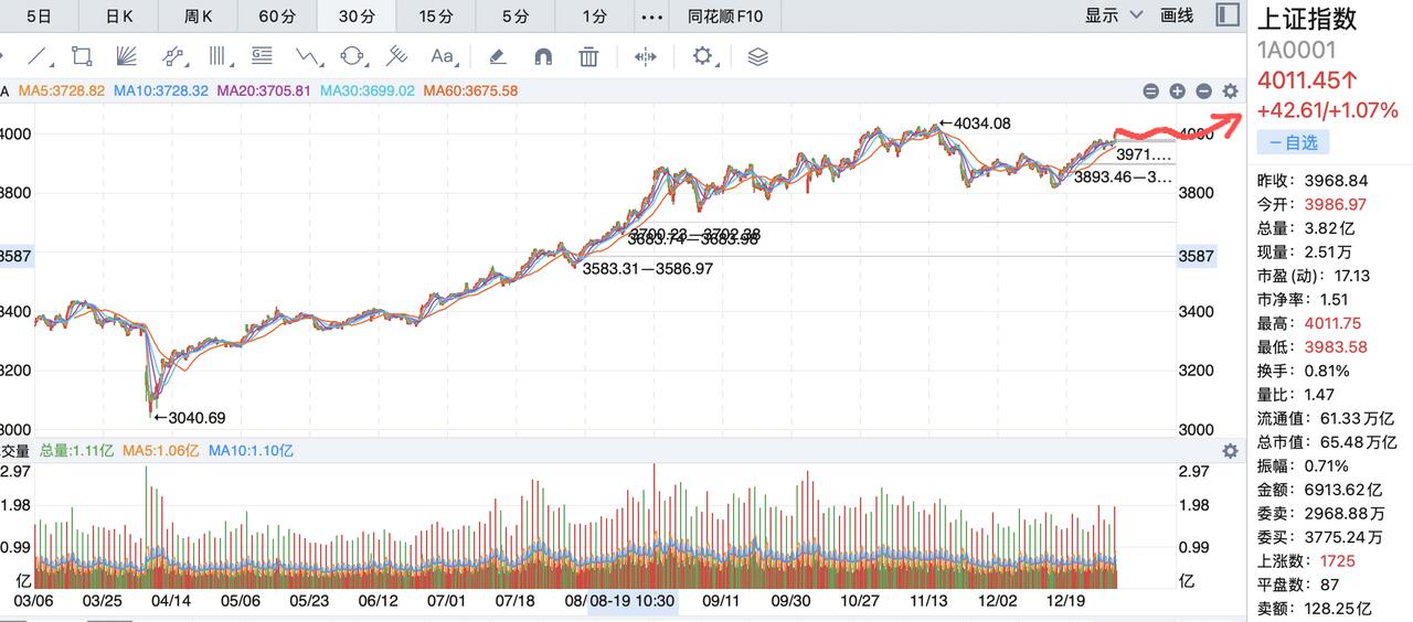 完美开局下的风险!今天商航严重分歧,脑接口一枝独秀,机器人板块和智能体稳重上升,这样的走势气势磅礴,一举突破4000点,这样的开局非常美! 但是有几个方向需要注意,航商后排才开始跌,关键是看龙头航发和中卫星的走势,如果龙头收盘不及预期,可能出现大幅跳水的情况,这个阶段的主线依然看好机器人,大消费的时间还没有到,今天海南板块带领消费走低,这样的走势说明海南板块和大消费依然还有比较大的机会! 今天指数突破4000没有悬念,本周将会挑战4035点的高点,只要稳住手中票,正常盈利应该不是问题!