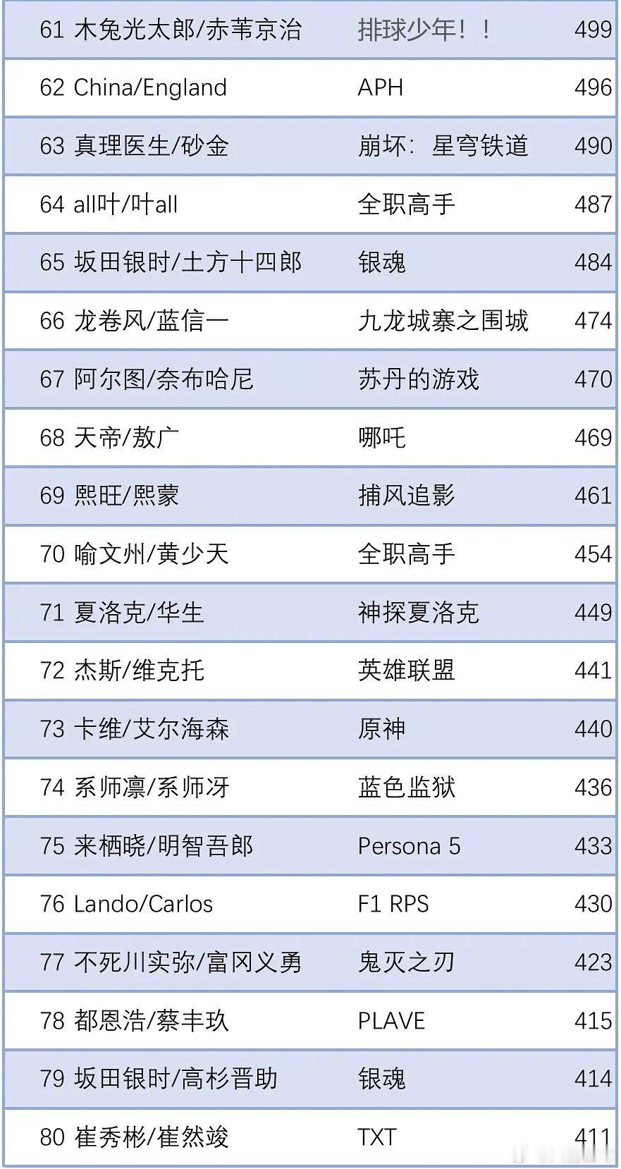 AO3 2025全年BL cp中文产出统计