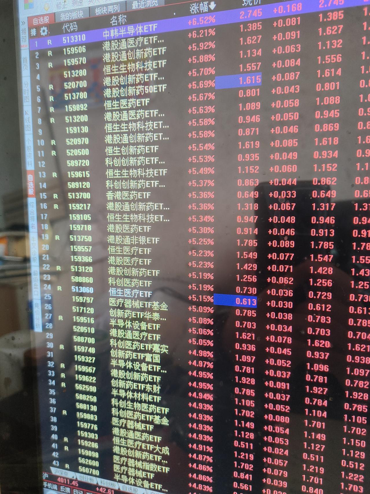 今天涨的是什么?跌的到底又是什么?只看到存储芯片和出创新药全都在上涨,跌的看到是化工,油气,旅游,银行,物流这种。这种本身持仓的人就不多,杀伤力很有限。这点从场内ETF可以看的清清楚楚。涨幅靠前的涨幅都在5%以上,而跌幅靠前的也只跌了0点几,所以今天总体是涨多跌少,赚钱效应其实挺好的!
