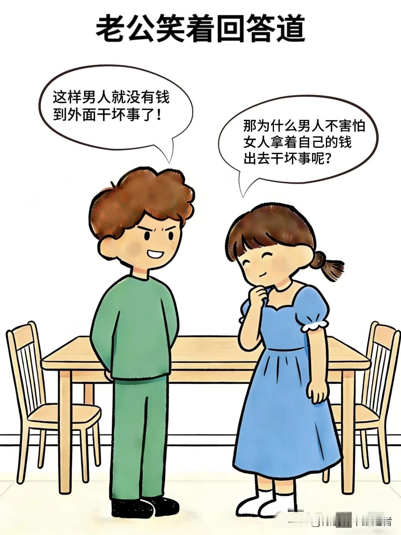 有什么好看的漫画趣味漫画:老婆:男人为什么要把工资交给老婆呢,丈夫:这样男人就没钱到外面干坏事了,老婆:那为什么男人不害怕女人拿着钱出去干坏事呢搞笑漫画 搞笑漫画夫妻