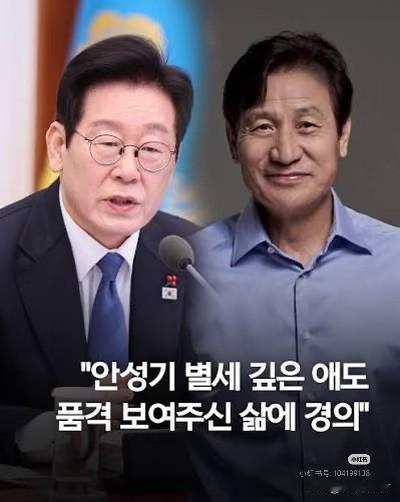 【韩国演员安圣基去世,李在明哀悼】李在明表示:“祈愿‘国民演员’安圣基先生安息! 李在明总统就长期以来作为“国民演员”深受喜爱的已故安圣基演员去世的消息,表达了深切的哀悼之情。 李在明今天通过个人社交媒体表示:“对于在韩国电影史以及整个文化艺术领域留下重要足迹的安圣基老师的离世,谨致以深切的哀悼。” 他还表示:“对老师而言,表演即是人生,而他的人生也成为无数人获得慰藉、喜悦以及反思的时光。” 他接着说道:“作为一位真诚描绘贯穿时代的人间悲欢离合的演员,作为一位如邻里般亲切的演员,他将永远留在人们心中。在长达69年的演艺生涯中,出演了170多部作品,不分主角与配角,老师所展现出的炽热热情将被我们长久铭记。” 此外,李在明还表示:“我向老师展现出重谦逊胜过华丽、重品格胜过竞争的人生致以崇高敬意。我坚信,即便岁月流逝,他那不变的感动与回响也将始终陪伴在我们身边。温暖的笑容与柔和的嗓音已令人深深怀念,衷心祈愿您安息长眠。”