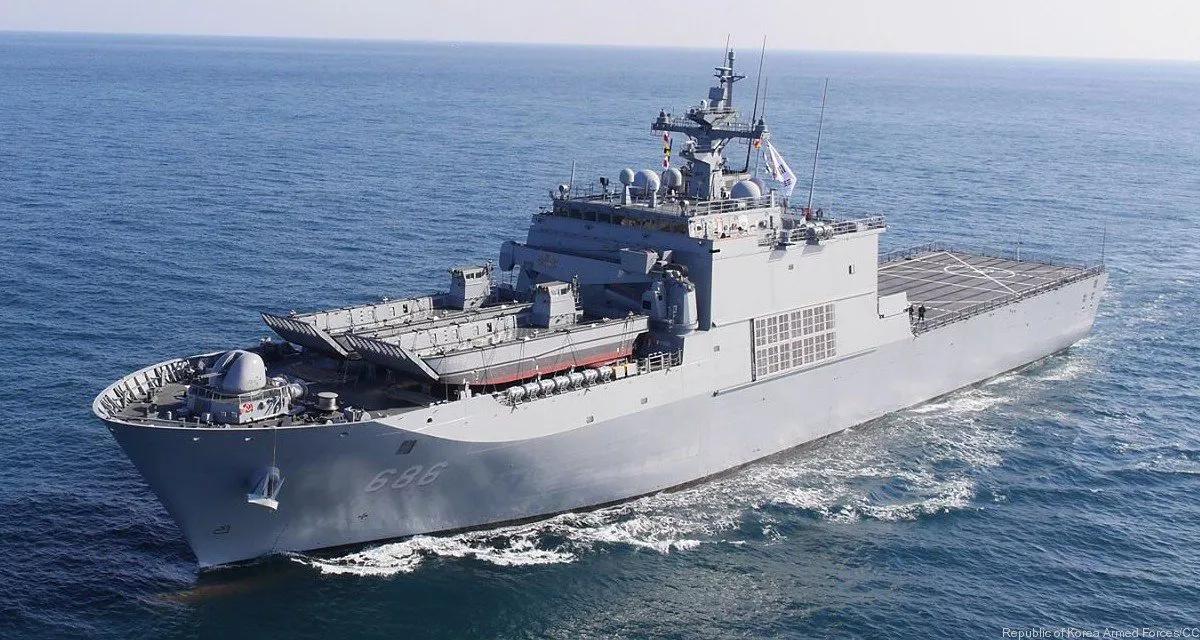 韩国“天王峰”级船坞登陆舰 “天王峰”级是韩国海军“独岛”级两栖攻击舰的重要补充,共同构成了韩国现代化两栖投送力量的高低搭配体系。它专注于平面登陆和重型装备投送,是韩国海军陆战队“由海向陆”作战能力的关键组成部分。 1. 基本概况与战略定位 * 级别:天王峰级,LST-II 项目。 * 设计定位:大型坦克登陆舰/船坞登陆舰。核心任务是重型装备和主战兵力的平面登陆、后勤支援,以及人道主义救援/救灾行动。 * 战略意义:与侧重垂直投送的“独岛”级形成功能互补,共同构成韩国完整的两栖投送体系。其较大的吨位和坞舱设计,使其能投送更重、更多的装备。 2. 核心性能参数 项目 参数 舰型 船坞登陆舰(LST) 满载排水量 7,140吨 舰长 126.9米 舰宽 19.4米 坞舱 可容纳2艘LCAC或LCU气垫登陆艇,或3艘LCM机械化登陆艇 飞行甲板 舰尾设有大型直升机起降甲板,可同时操作2架直升机 动力系统 4×柴油机,双轴推进 最大航速 23节 续航力 5,000海里/15节 舰员编制 约120人 搭载能力 300名陆战队员,20-30辆主战坦克或200辆轻型车辆,以及相应物资。 3. 设计特点 * 大型舰尾坞舱:采用类似美国“圣安东尼奥”级的舰尾坞舱设计,通过巨大的尾门进行装载和卸载作业,可让气垫登陆艇直接进出,大幅提升登陆效率。 * 贯通式车辆甲板:车辆从舰尾坞舱进入后,可通过贯通式甲板直接驶向舰艏的跳板门,实现快速装卸。 * 隐身设计:采用了一定程度的隐身外形设计,上层建筑简洁内倾,降低了雷达信号特征。 * 模块化医疗设施:可快速搭载医疗方舱,转变为海上医院船。 4. 核心投送能力 * 平面投送核心: * 高速气垫登陆艇:可搭载2艘韩国国产的LSF-II气垫登陆艇(类似美军LCAC),实现高速、超越地平线的远程突击上陆。 * 传统登陆艇:也可搭载更多数量的传统登陆艇,进行常规登陆作业。 * 重型装备运载:其巨大的车辆甲板是运载K-2主战坦克、K-9自行火炮、两栖突击车等重型装备的关键。 * 有限的航空支援:舰尾飞行甲板可用于UH-60、UH-1H等直升机的起降,主要用于人员转运、物资吊运和有限的垂直补给,不设机库,航空作业能力有限。 5. 武器与电子系统 * 自卫武器: * 搭载一门双管40毫米速射炮作为主要对海对空武器。 * 防空导弹系统为4单元K-VLS垂直发射系统,采用一坑四弹配置,共装填16枚K-SAAM“海弓”防空导弹。 * 2座“密集阵”Block 1B近防系统。 * 传感器系统: * 对海/对空搜索雷达。 * 导航雷达和火控雷达。 * 电子对抗系统。 6. 服役情况与发展 * 建造与服役:计划建造4艘,目前已全部服役。 * LST-686 天王峰号(2014年服役) * LST-687 天子峰号(2017年服役) * LST-688 日出峰号(2018年服役) * LST-689 露积峰号(2018年服役) * 角色:与“独岛”级共同组成两栖快速反应群,是韩国应对岛屿争端、执行海外派遣和人道主义任务的核心舰艇。 7. 优势与局限性 * 优势: 1. 强大的重型装备投送能力:是韩国海军投送坦克、火炮等重装备的绝对主力。 2. 高效的平面登陆效率:大型坞舱和高速气垫艇的组合,实现了快速远程登陆。 3. 良好的远洋航行能力:吨位大、自持力强,适合远距离部署。 4. 多任务适应性:平台设计兼顾军事投送和民事救灾任务。 * 局限性: 1. 航空能力薄弱:无机库,航空作业完全依赖天气,无法独立提供持续的空中支援。 2. 自卫能力有限:与“独岛”级类似,防空反潜主要依赖护航舰艇。 3. 航速中等:23节的航速在高速两栖特遣队中略显不足。 总结 “天王峰”级是韩国海军两栖力量体系中不可或缺的“重载卡车”。它不像“独岛”级那样具备华丽的全通甲板和轻型航母潜力,但它提供了两栖作战中最根本、最扎实的重型装备和主战兵力投送能力。通过与“独岛”级的协同作战(“独岛”负责指挥、制空和垂直突击,“天王峰”负责重装上岸),韩国海军构建了完整的现代化两栖作战链条。在应对半岛潜在冲突、保卫离岛以及执行海外非战争军事行动中,“天王峰”级都是一个坚实可靠的基础平台,体现了韩国海军务实、均衡的发展思路。