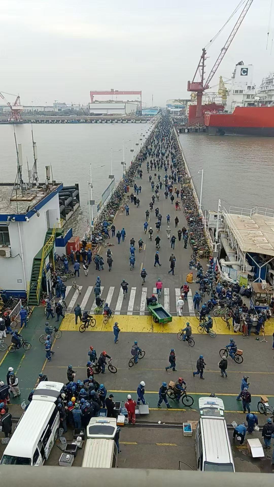 看到这样的场景, 你想到了什么? 今天偶然的机会来到造船厂,站在船坞边看着这望不到头的队伍,全是造船人裹着厚工装的身影。 不管春夏秋冬,风吹日晒那是家常便饭,钻船舱、爬脚手架更是日常,手上的老茧磨了一层又一层。 可就是这样的一群人,把一块块钢板拼成巨轮,让中国造的船驶向全世界,咱造船人,累是真累,骄傲也是真骄傲!打工人在船厂 船厂打工人 船厂造船