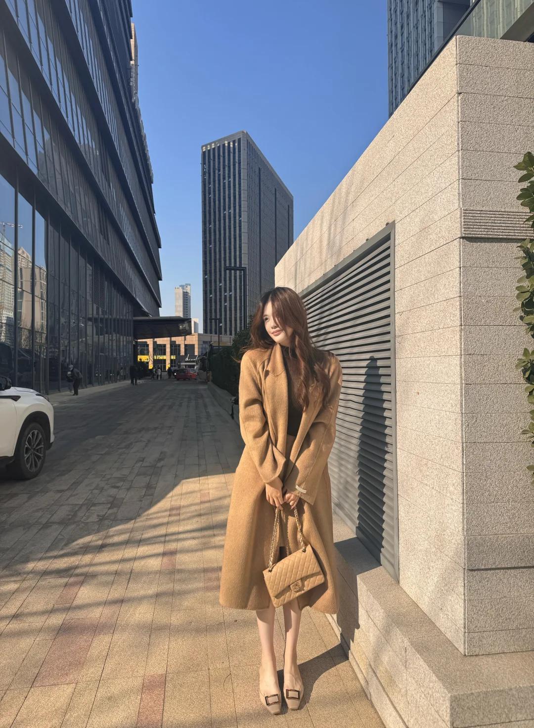 为什么驼色大衣那么受欢迎? 驼色长款大衣如冬日暖阳般温柔包裹身形,流畅的剪裁与