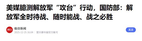 摊牌了!   最近那些整天拿着日历算 “台海开战时间” 的人,突然集体哑火了。前阵子还吵着 “2027 必打”“2030 是窗口期” 的各路 “专家”,被国防部一记实锤砸得没了声响。   12 月 25 日的例行记者会上,新闻局副局长张晓刚大校把话挑得明明白白:“所谓‘窗口期’‘时间表’都是伪命题,解放军随时能战,战之必胜!”   这位 1999 年就投身军旅的大校,发言从来不带虚的。面对美媒炒作的 “三步攻台论” 和所谓 “最佳登陆时间”,他直接戳破把戏:“个别媒体枉费心机臆测行动,纯属居心叵测贩卖战争焦虑”。这话算是把窗户纸捅透了,那些蹲点预测年份的,要么是真不懂军事,要么就是故意误导舆论。   印太司令部的前司令阿奎利诺,是最先提出2027年这个时间点的那位。刚上任的时候,他在国会的听证会上特别讲到,中国的军队现代化速度特别快。   军费每年都在增长,到了2020年,涨了16%左右,导弹的存量翻了一番,战机和主要战舰也大量加入服役。这些情况让他觉得,到2027年,解放军就差不多具备全面行动的能力了。   接棒的帕帕罗今年依旧这么个路子,不过他更重视实战准备,强调解放军通过围岛演习在练习快速反应,要是打起来,一两周就能搞定。国防部助理部长达尔顿从战略角度说,封锁加上电子战两下子,能在三四周内把形势稳住,美军插手的时机也就变得更窄了。   今年四月那次围岛演习成了个转折点,演习才两天,却包括联合巡逻、战场指挥和精准打击,多个军种配合得妥妥的,区域就挨着台湾界线,形成了个包围圈似的态势。美军看到的并不是单纯的炫耀实力,而是在检验快速反应的本事,想防止陷入长时间的拉锯战。   报道里提到,美方之前五角大楼的顾问发文章说,中国大陆正按三个阶段推进:先封锁、制造反美的舆论,然后进行军事威慑,最快半年就会启动最终行动。有些极端观点甚至认为,两天内通过海空封锁和饱和攻击就能达成目标,打击美军基地。   打仗这事儿哪有看黄历的道理?张晓刚在会上说得清楚,战备是 “连续的、动态的”,就像过日子一样,哪能靠掐着日子准备。2025 年全军的训练数据就是最好的证明:陆军搞 “集约专修” 模式,在极限环境里练实战技能。   海军推进跨域融合,航母战斗群天天在远海磨协同;火箭军忙着把无人、网电新力量融入体系。这些活儿不是为 “某一年” 准备的,而是为 “任何一天” 准备的。   最有说服力的还是福建舰的动向。9 月份它带着 “航母五件套”—— 歼 - 35 隐身战机、空警 - 600 预警机全配齐,稳稳通过台湾海峡赴南海训练。   懂行的都知道,这套路和当年山东舰入列前一模一样,第九次海试跨海区,意味着离形成战斗力就差最后一步。以前美军还敢吹嘘 “介入台海”,现在帕帕罗司令都承认,解放军几小时就能切换战时状态,美军插手的窗口期越来越窄。   那些预测年份的论调,本质上是没搞懂台海问题的核心。张晓刚反复强调 “看谁先碰红线”,这红线可不是随便画的。   2025 年美方刚签完 “2026 财年国防授权法案”,就给台当局塞 10 亿美元军购;赖清德一边喊 “以实力求和平”,一边要砸 400 亿美元买武器。这些动作不是在走钢丝,是在往火药桶上扔烟头。   更可笑的是美国前总统特朗普的 “保台宣言”,说 “只要我在任就没人敢收台”,转头又承认 “协防要看情况”。这种模糊承诺骗得了台湾当局,骗不了明眼人。   台媒民调早显示,七成受访者不信美国会真帮忙。毕竟中国稀土加工垄断全球 90%,美军军工库存撑不过 3 个月,真要碰红线,他们自己都得掂量代价。   解放军的准备从来都是 “全时在线”。2024 年台海战备巡航比上年增了 20%,歼 - 20 往东南沿海一摆,福建舰在台海周边练弹射,这不是摆样子给人看的。   12 月刚施行的《兵役登记工作规定》更把底子打牢了,从省市县乡到军地各部门,权责清清楚楚,就是要让后备力量随时能补上来。这种日复一日的积累,比任何 “时间表” 都有说服力。   其实从 2024 年 4 月那次围岛演习就能看明白,解放军早就摆脱了 “被动应对” 的老路子。两天时间里,海空联合巡逻、精准打击演练一气呵成,把包围圈扎得严严实实。   这哪是 “演习”,分明是实战流程的预演。现在张晓刚把 “随时能战” 摆上台面,就是告诉那些挑衅者:别拿年份当护身符,红线碰不得,碰了就必须付出代价。   那些还在盯日历的人该醒醒了。统一不是 “到期兑现” 的承诺,而是捍卫主权的必然。解放军的战机天天在台海巡航,航母在远海练兵,不是在等 “某个年份”,而是在等 “停止挑衅” 的信号。   要是 “台独” 势力和外部干涉者非要往前冲,那所谓的 “开战时间”,就是他们越界的那一刻。