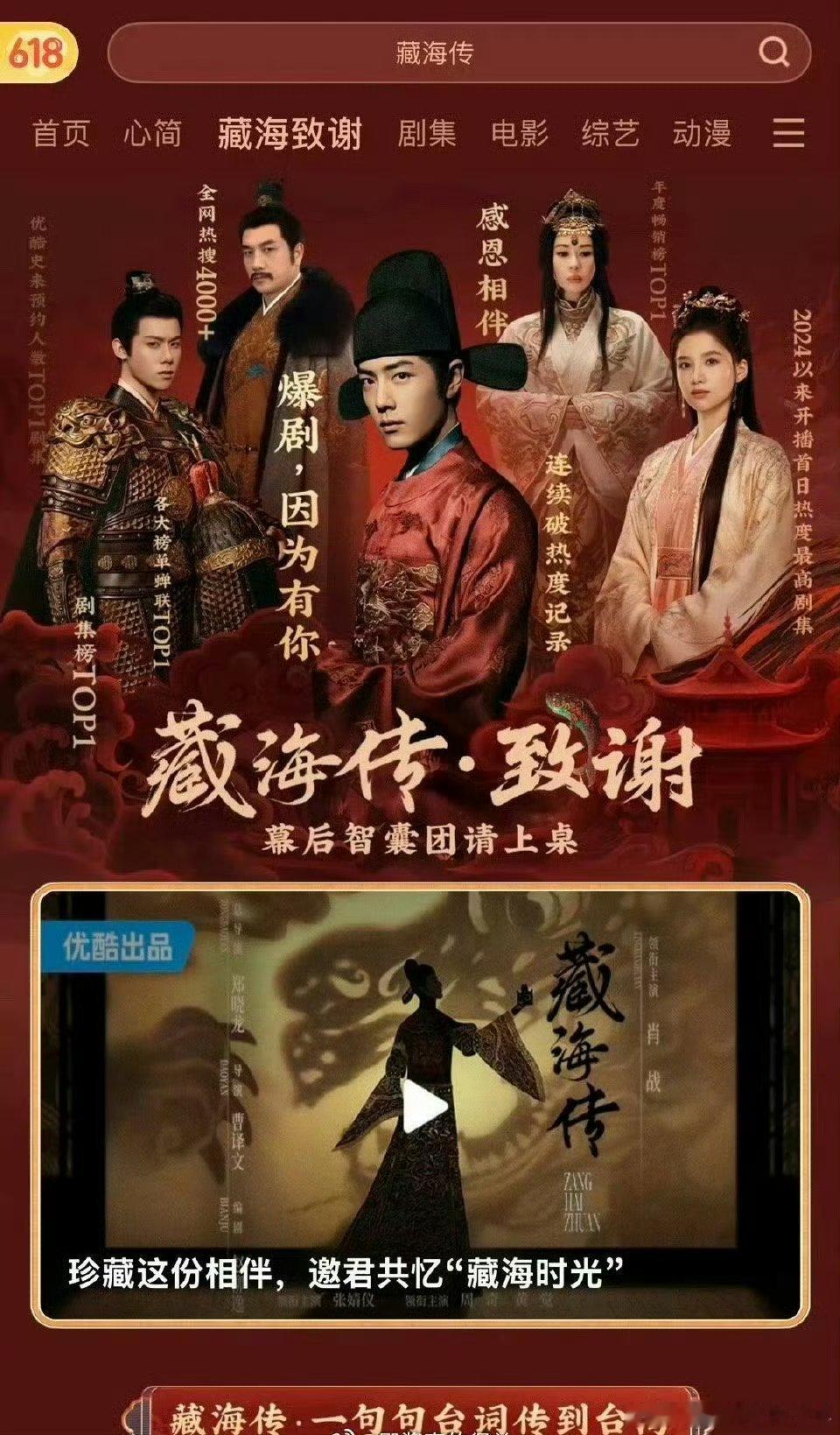 因为肖战跨年舞台入坑《藏海传 》在优酷的成绩: 优酷历史上唯一的一部云合占比40%以上的剧,优酷唯一v榜指数过90的剧,优酷唯一开专栏致谢的剧,优酷历史上唯一的一部拿下云合,灯塔,猫眼三榜年冠的剧,怪不得优酷给藏海传的战报一个接一个的发🔥🔥因为肖战跨年舞台入坑
