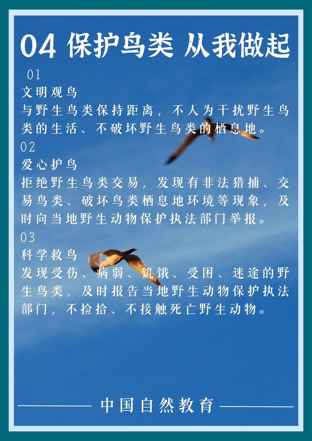 在中国,在大自然中,鸟类被誉为辛勤的授粉者、自然的医生、森林的播种者,在维护自然生态平衡中发挥着难以替代的作用。 如今,加强鸟类保护,维持生态多样性,呵护生态家园,已成为贯彻落实习近平生态文明思想、建设美丽中国的重要内容,爱鸟护鸟对于保护野生动物资源、维护生态平衡、实现经济社会可持续发展等都具有十分重要的意义。