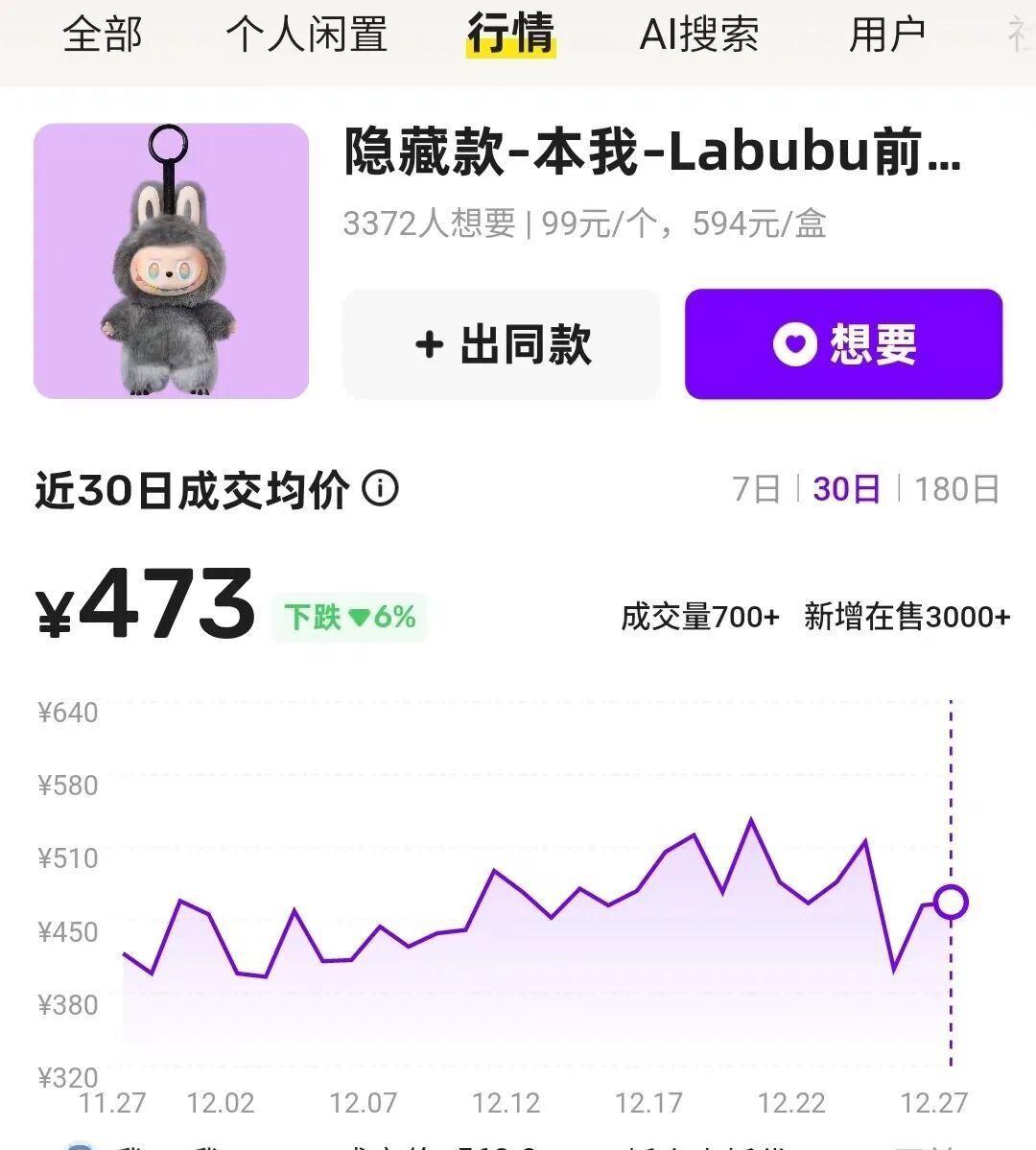 理财神话变破发价?Labubu崩了你还接盘吗 前两天Labubu二手价崩上热搜。半年前还炒成理财神话。99元抽到3.0隐藏本我,闲鱼能卖到4500。到了2025年底,跌到500,近九成蒸发。594元坐坐派对搪胶毛绒系列,二手均价从1400回到600。常规款在闲鱼60、70,官方原价99。 关键一刀不在黄牛,在泡泡玛特。2025年中开始,去年6月全渠道预售,疯狂补货。稀缺没了,囤货成烂货。供需倒转,黄牛急着抛。 潮玩就是搪胶毛绒,不是理财工具。价格跌,共识散,光环掉。好处也有,真粉现在几十块就能买。态度明确,别把塑料当投资,买来开心更值。