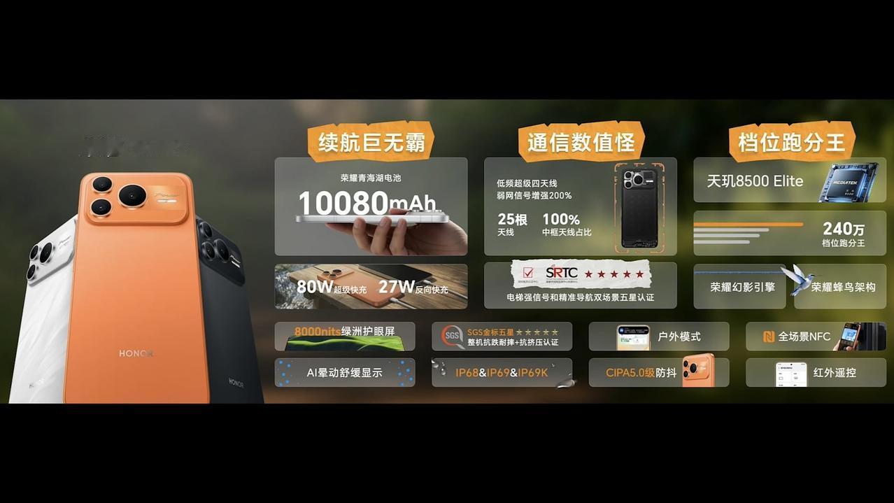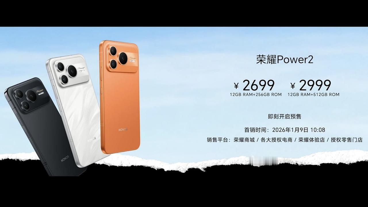 号称续航巨无霸、通信数值怪、档位跑分王,荣耀Power 2发布,首发天玑8500 Elite芯片,跑分240万,屏幕峰值亮度8000尼特,电池10800毫安时,搭配80W快充。 配置可以,就是涨价挺多的,比上代涨了500元! 对于荣耀Power 2的新设计,荣耀称背面有“信号岛”。不过这次的橙色真的很像苹果iPhone 17 Pro,选橙色真的挺需要勇气。相对来说,白色会好些,黑色则有点一般。 12GB+256GB:2699元 12GB+512GB:2999元