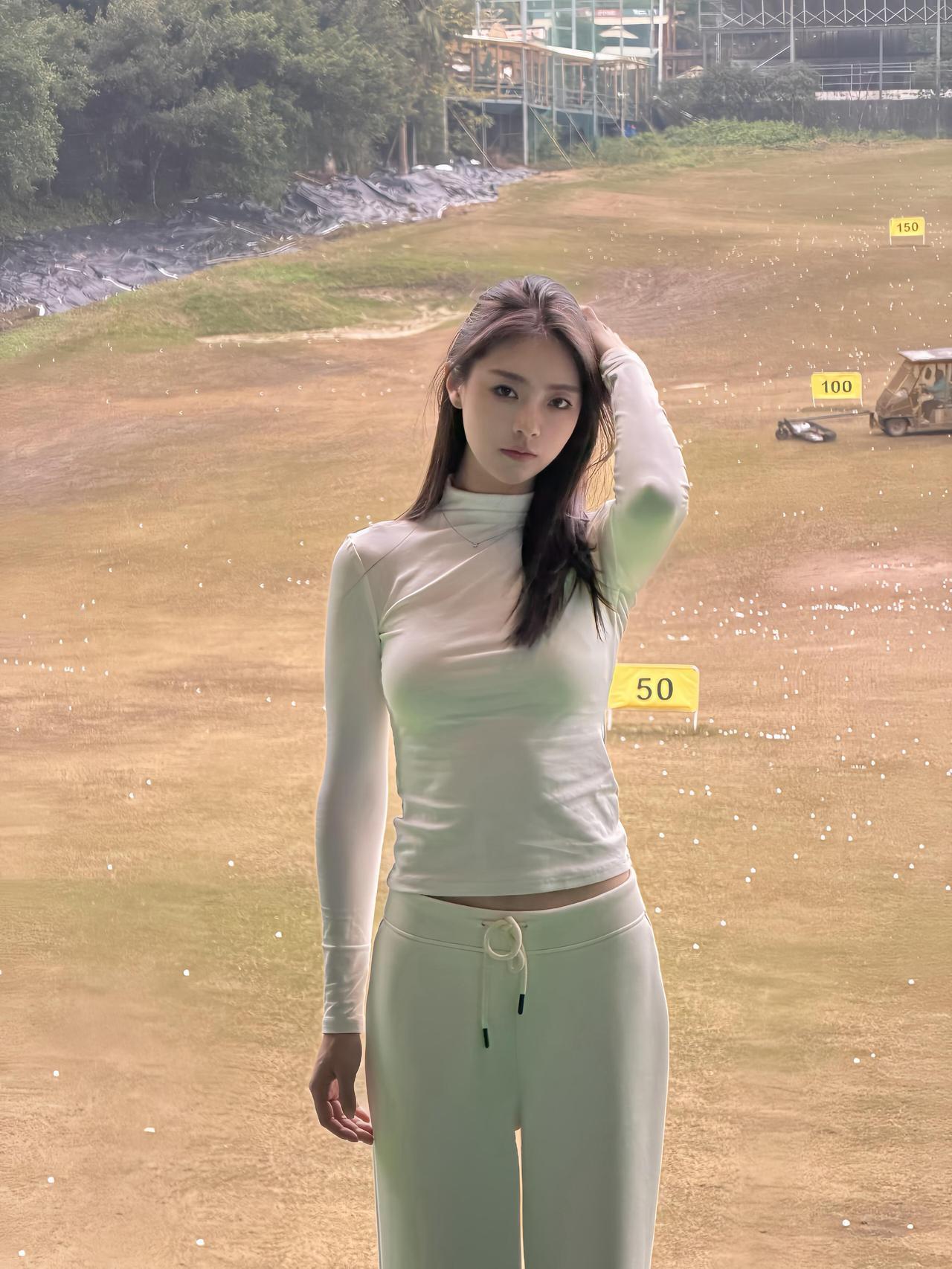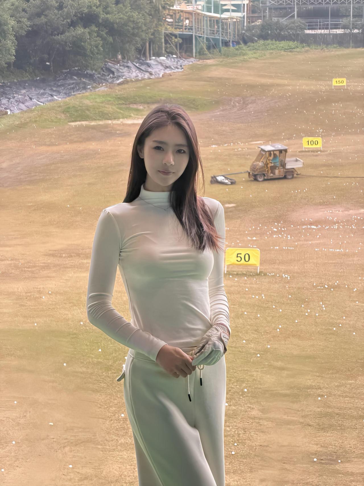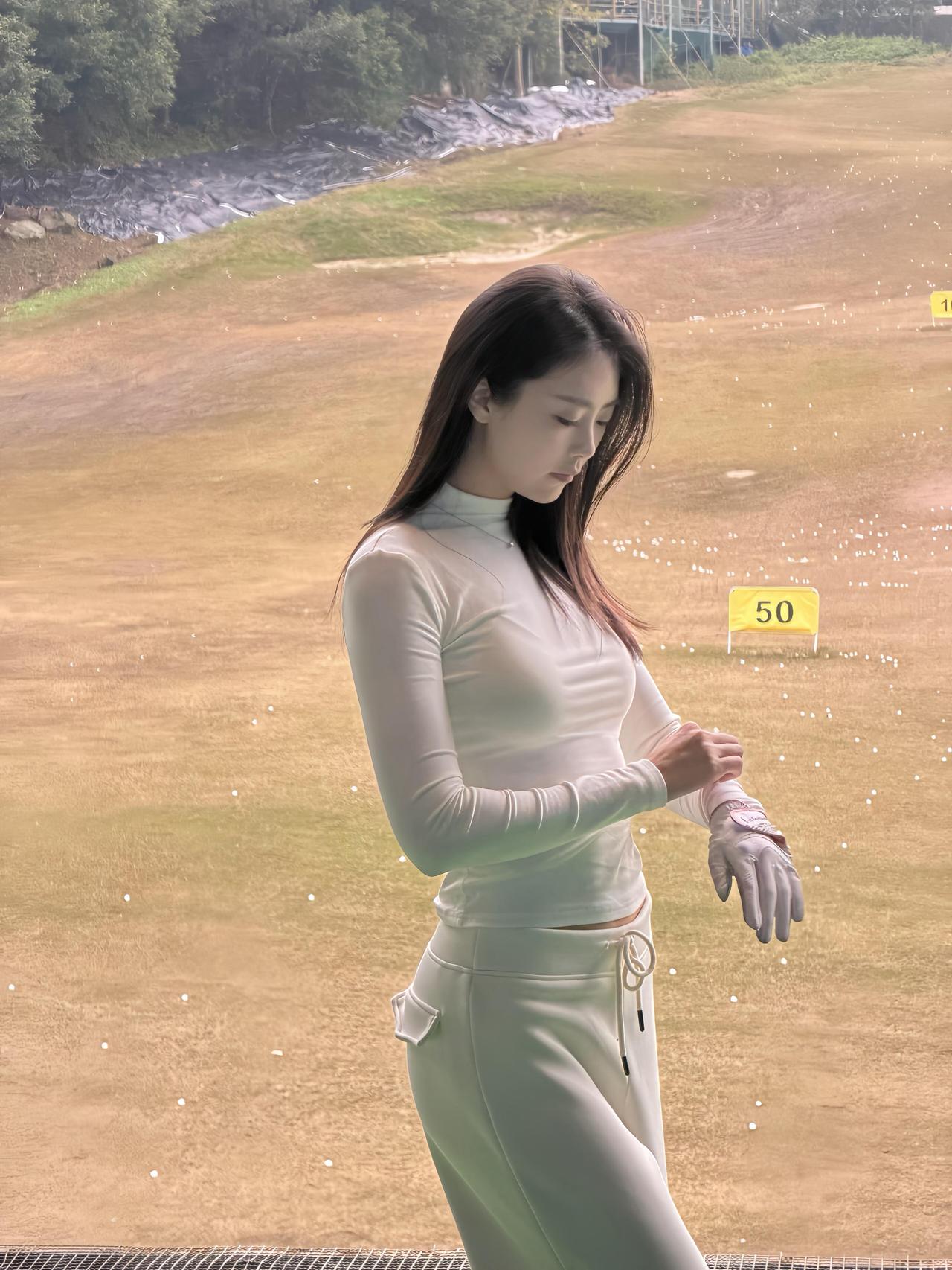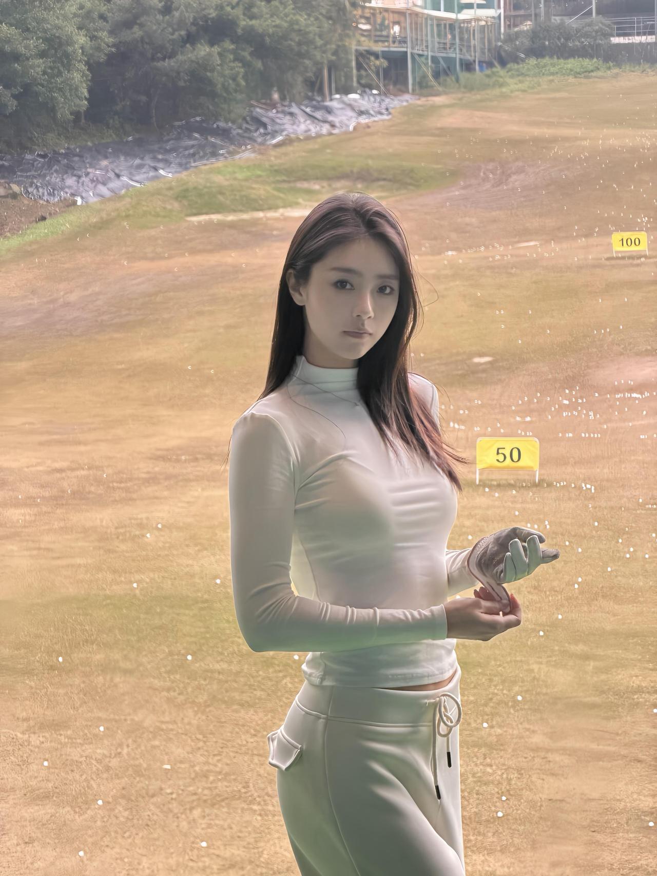 莺啼序·高尔夫练习场见佳人 晴郊漫铺软草,惹风轻絮舞。 看黄签、五十标程,百码遥处微露。 树阴外、棚栏半倚,球车慢碾坡头路。 恰伊人立此,白衣衬得眉妩。 窄领衫轻,束腰裤软,把纤腰暗度。 乍抬手、掠鬓簪斜,腕边银缕微露。 又低眉、松绳整套,指尖绕、皮襟轻抚。 恁从容,眸底澄澄,似含秋浦。 闲场寂寂,细草离离,数飞球点素。 渐听得、杆风微动,却未挥杆,只把拳舒,试将力蓄。 垂肩发软,凝眸神定,寻常姿态偏清绝,胜繁花、乱眼无寻处。 郊光正好,晴阳漫洒衣衫,薄影自随人步。 遥思此景,偶入尘嚣,恰如云出坞。 更莫问、名园胜迹,俗世浮华,暂借清风,洗却烦绪。 佳人独立,疏疏身影,教人心头添静意,任流光、慢把时光煮。 归来犹记当时,一抹白衣,在春深处。女子高尔夫 高尔夫美图