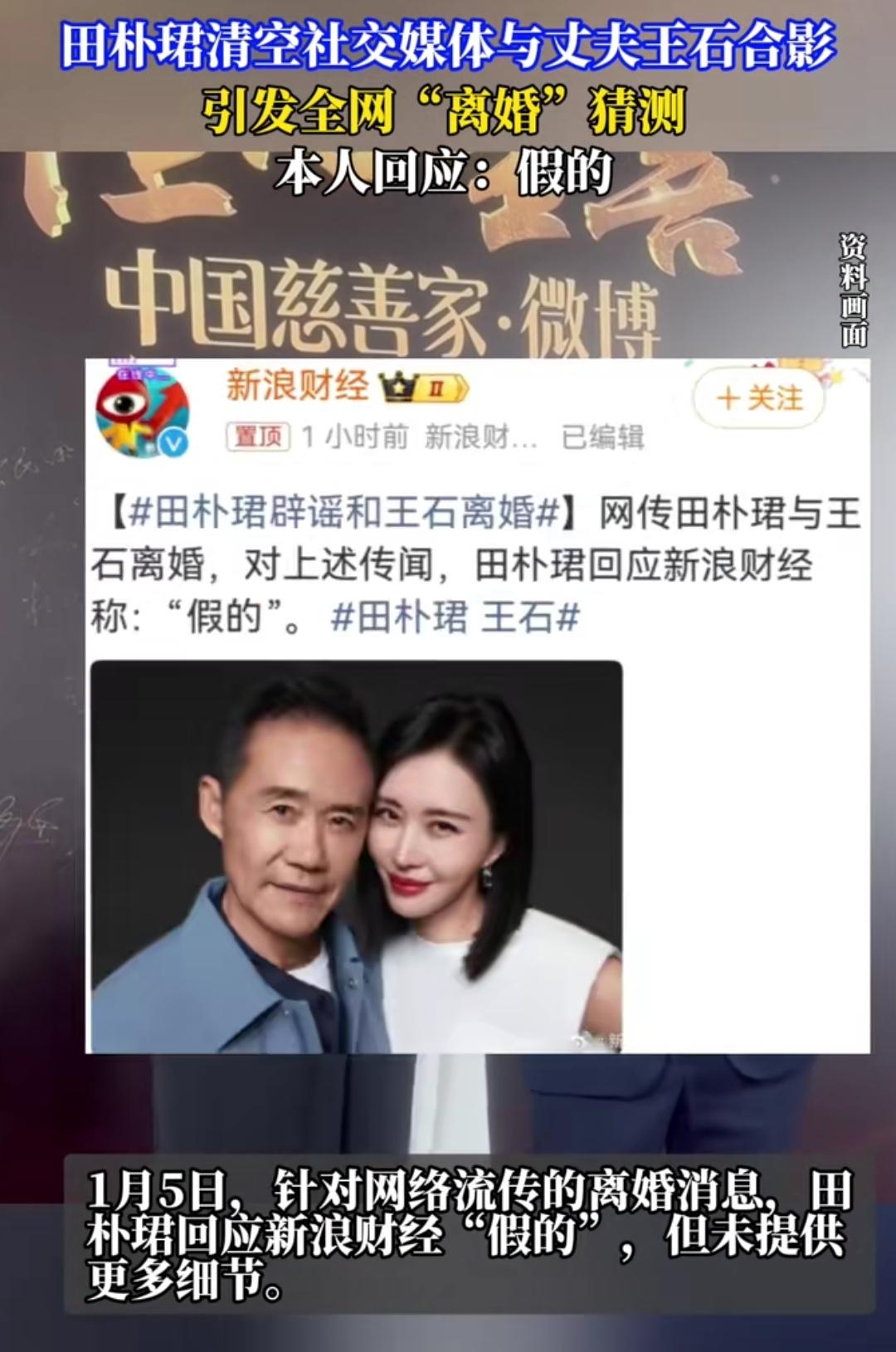 明星的感情状态怎么比连续剧还抓马?田朴珺清空和王石的合影,元旦各自发单人动态,再加上半年没公开同框,全网直接炸了,清一色猜“离婚了”。这阵仗,跟当初传他们恋情时一样热闹,网友扒细节的速度比当事人回应还快。 可人家立马出来辟谣“假的”,还留着2024年带娃同框视频,关注列表也只有王石。其实想想,他们本就不是爱秀恩爱的类型,老夫老妻少点公开互动很正常。网友盯着合影删没删、同框多不多,反而把私人生活架在放大镜下。 公众人物的感情总被过度解读,好像没频繁秀恩爱就是感情破裂。但感情好不好,从来不是给外人看的。比起揪着细节猜来猜去,不如给他们留些私人空间。毕竟,无论是明星还是普通人,感情都该是自己的事,不该被舆论推着走。