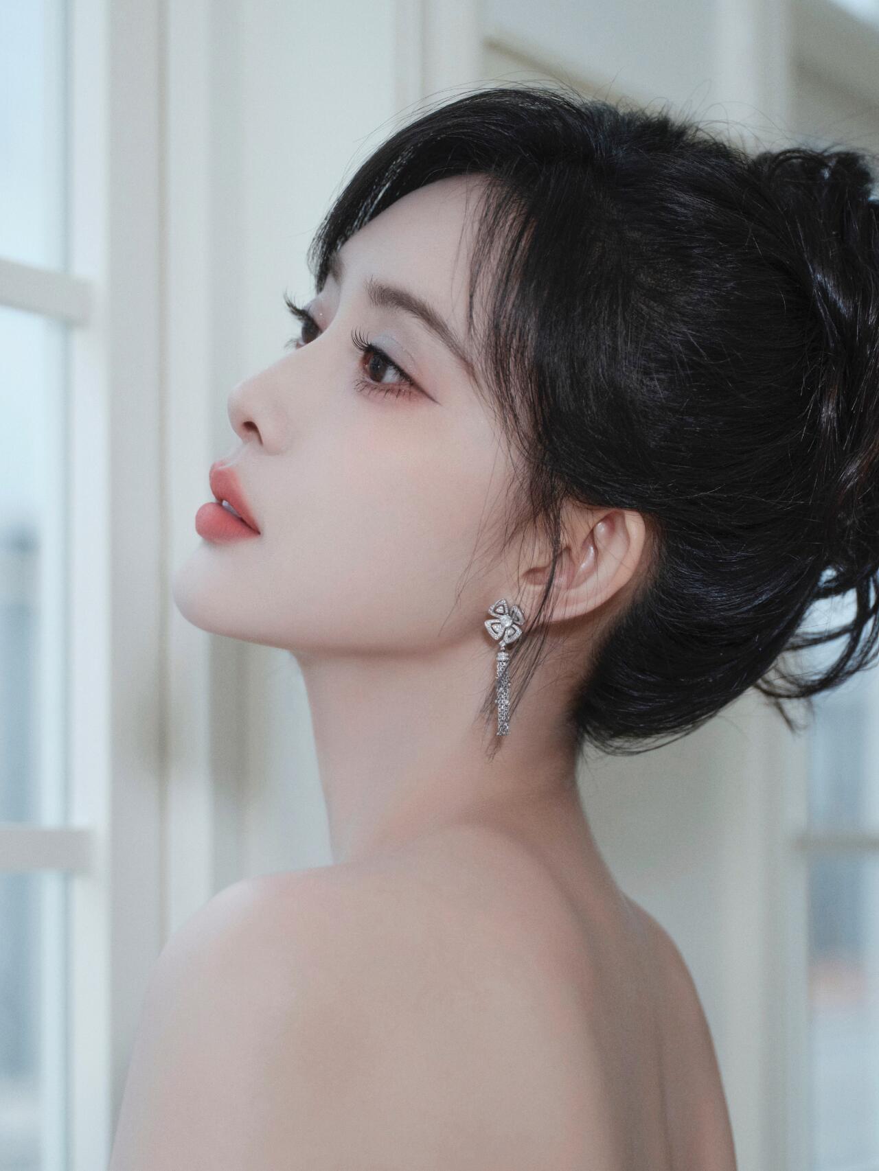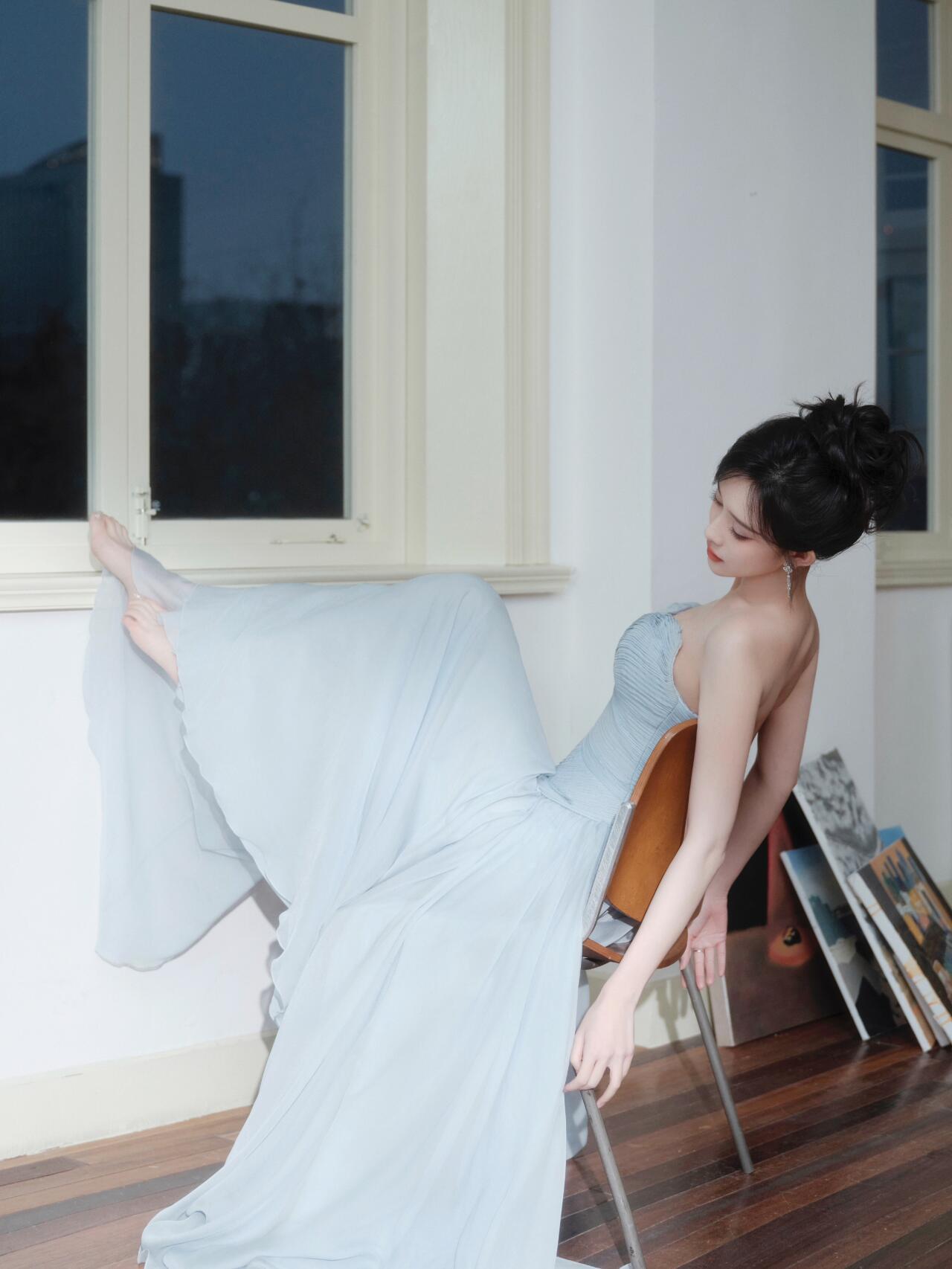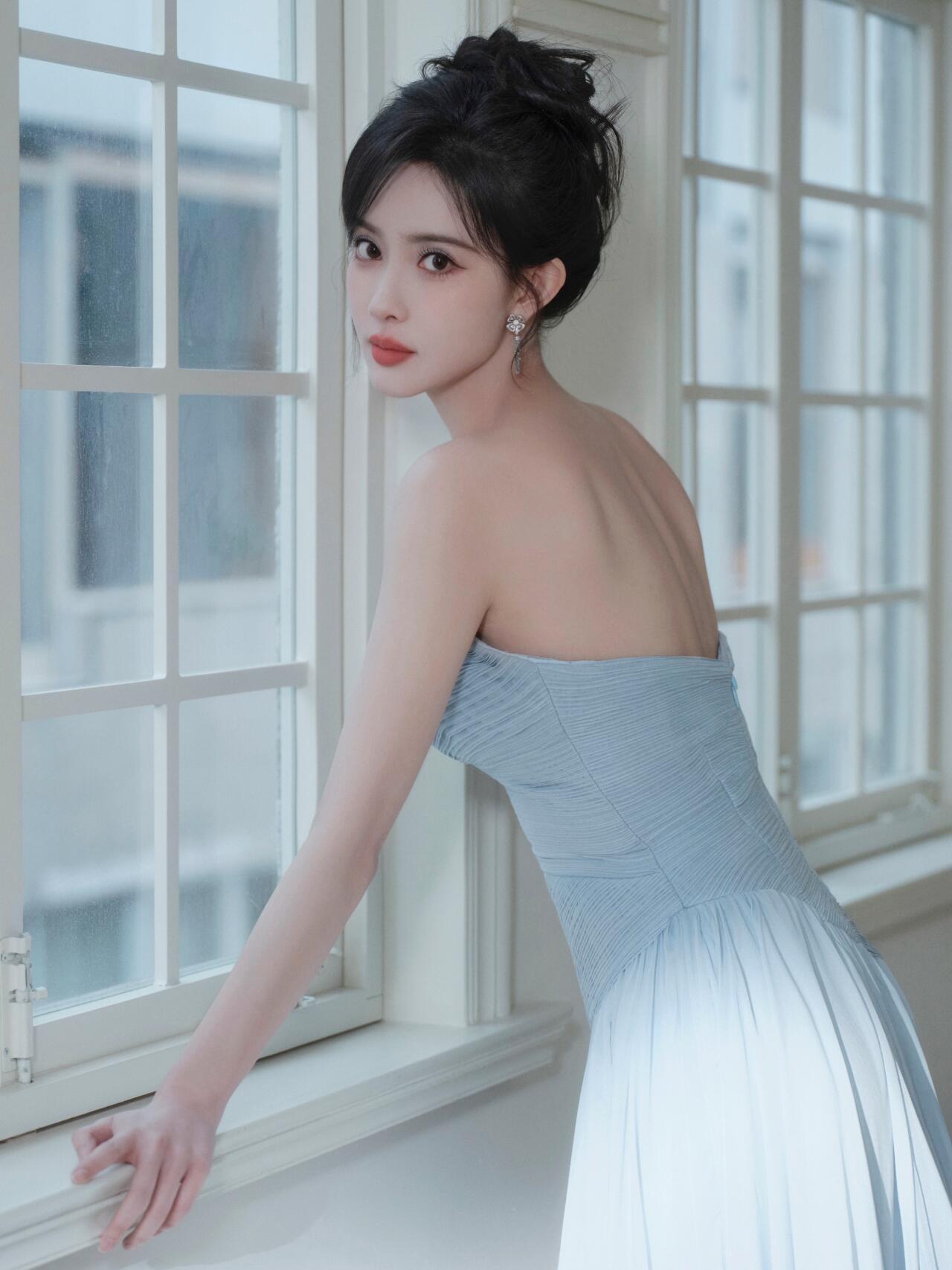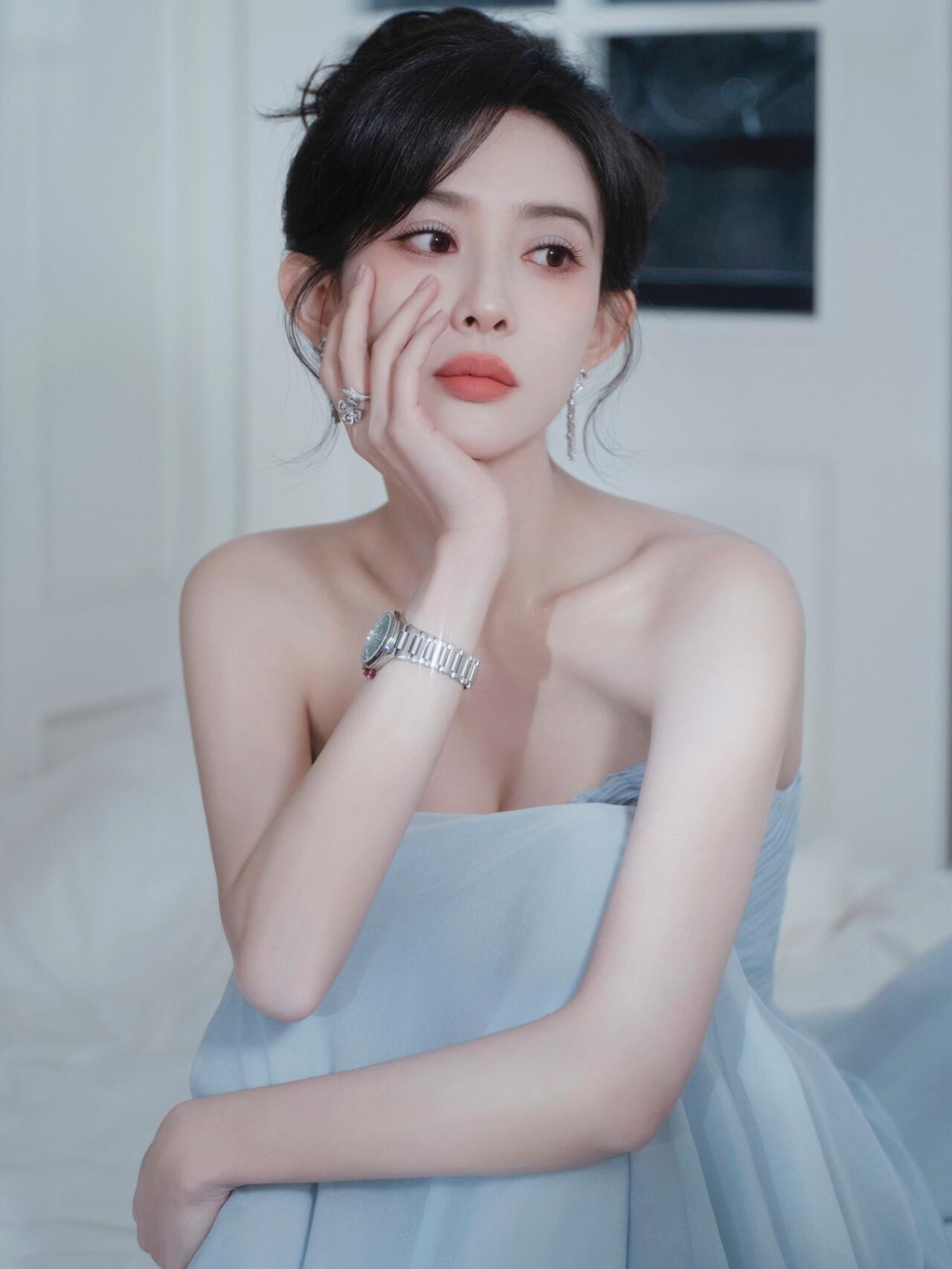 肤白貌美!孟子义穿蓝色抹胸裙,太好看了孟子义