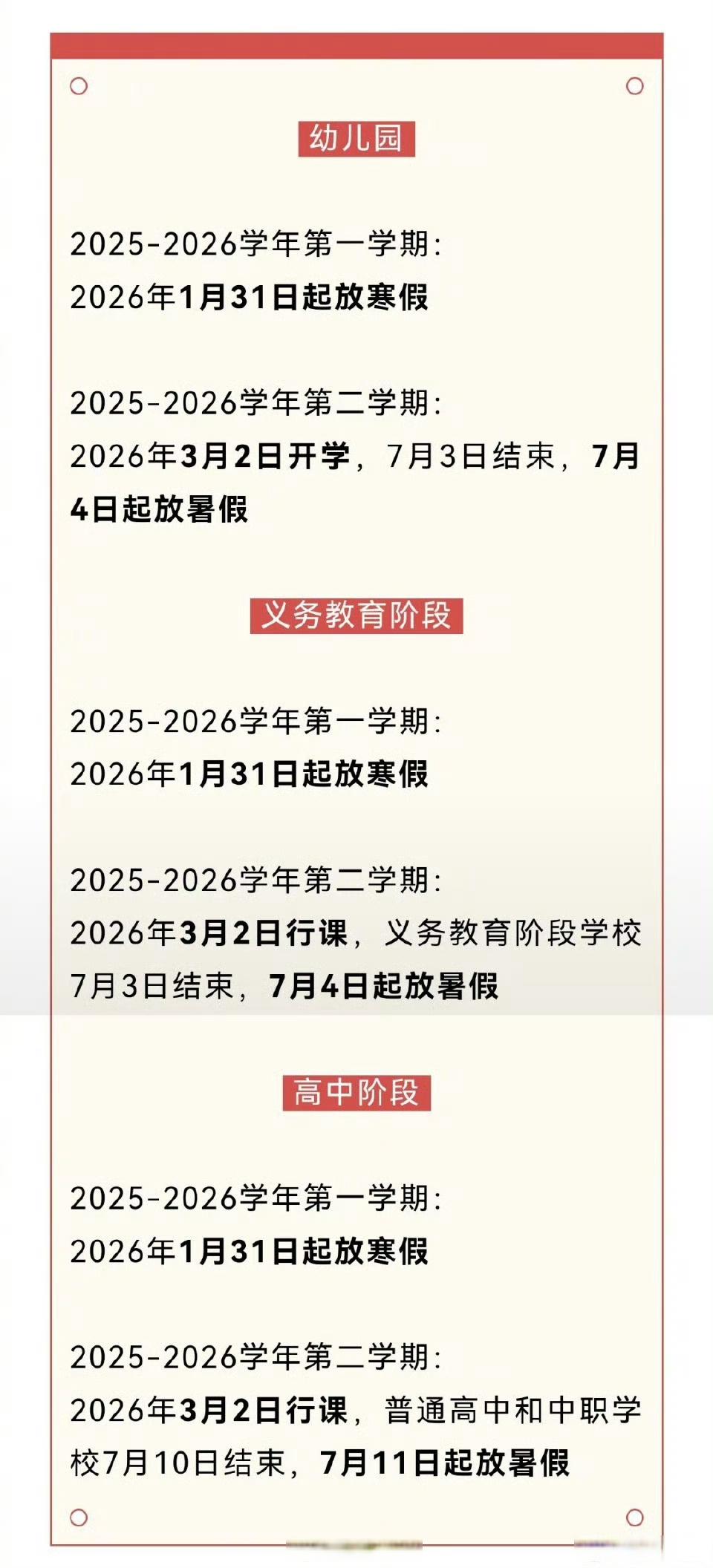 【最新发布!成都今年寒暑假安排来了】寒假即将来临,根据成都2025-2026学年中小学(幼儿园)校历,今年寒暑假时间如下↓↓成都教育发布
