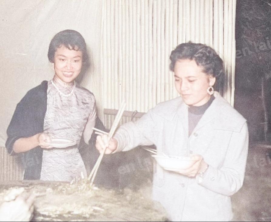 16、7岁的蒋孝章,也和大多花季少女一样是个“追星族”。 蒋家的“第一千金”不差和当红大明星见面合影的机会。 1954年,墙上的时钟刚过9点半,良辰美景定格在此刻。 照片中有蒋孝章和她的妈妈蒋方良;其余四位是当年影坛炙手可热的女明星: “小咪姐”李丽华、“香港珍珠”尤敏、“冬瓜美人”周曼华、银幕多面手欧阳莎菲。 在这星味十足的合照里,蒋孝章年龄最小,但她的混血颜值显得格外出众。 蒋孝章还和尤敏一起欣赏家人的相册,她温柔乖巧,丝毫没有“第一千金”的架子。 1955年,“追星”少女又有了和“曼波女郎”葛兰等明星一起吃烤肉的机会。 能和女星们零距离的互动,这位妙龄女孩一副开心到飞起的样子。 她肯定也梦想着,有一天也能拍电影、做大明星吧?