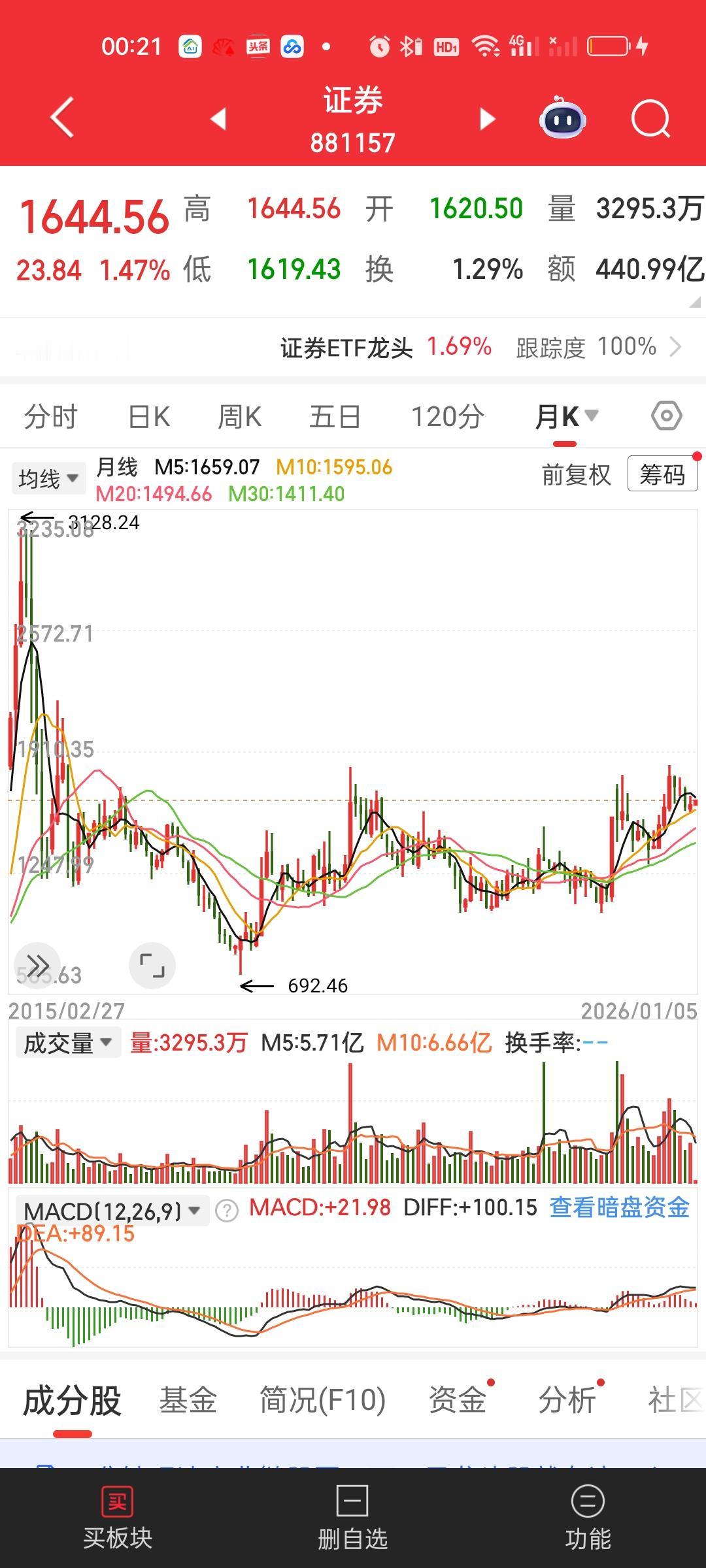 接下来一段时间券券应该是可以开始重点关注了,银行和保险的位置目前都很高了,保险今天暴涨6.72%已经到了相当高的位置。券券这段时间一直没有启动。我认为在这个位置是值得重点关注的。特别是今天上涨1.47%以后,已经站上了所有均线支撑。