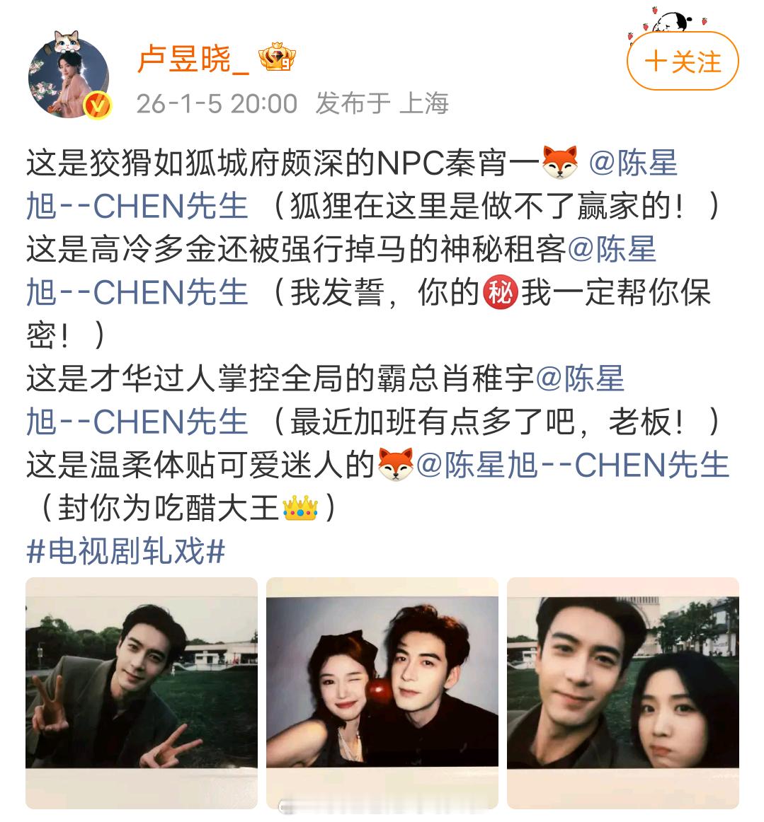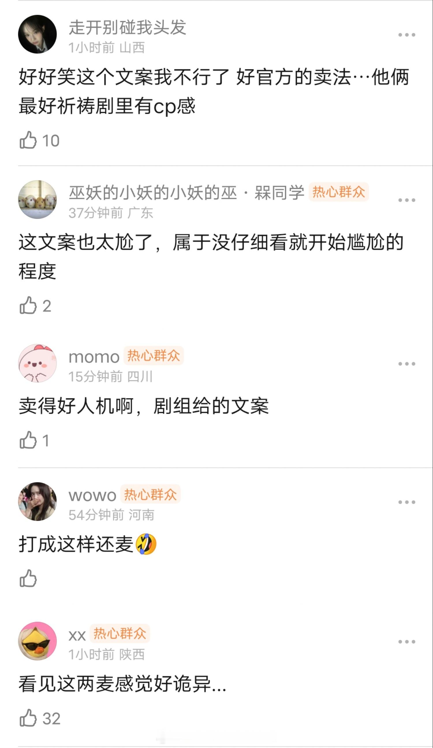 陈星旭卢昱晓剧宣互发对方拍立得营业,网友觉得两人年龄感太重看起来有点差辈儿了,而且营业文案太官方太人机了。你们觉得《轧戏》男女主有cp感吗?轧戏定档 统一军装审美的男人杀回来了 导演猫的树这几个字还是太权威了