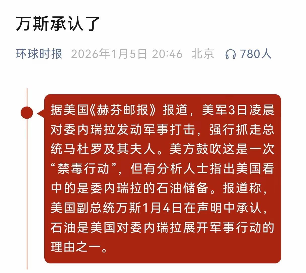 美副总统万斯住宅凌晨遭袭,窗户被砸,嫌犯被捕。这已非孤例,此前特朗普遇刺未遂,政治暴力在美国愈演愈烈。 为何戾气横生?矛头直指美国对外掠夺行径。以“缉毒”为名在委内瑞拉动武,被指为石油利益不择手段。前副总统哈里斯直言:这关乎石油和他本人。 对外掠夺的代价终由国民承担。当霸权行径反噬国内,撕裂与愤怒便化为子弹与砖石。政治精英的宅邸不再安全,正是社会尖锐矛盾的物理显现。若政策继续无视民生,这种“清算”恐才刚刚开始。美副总统万斯 美国二当家万斯