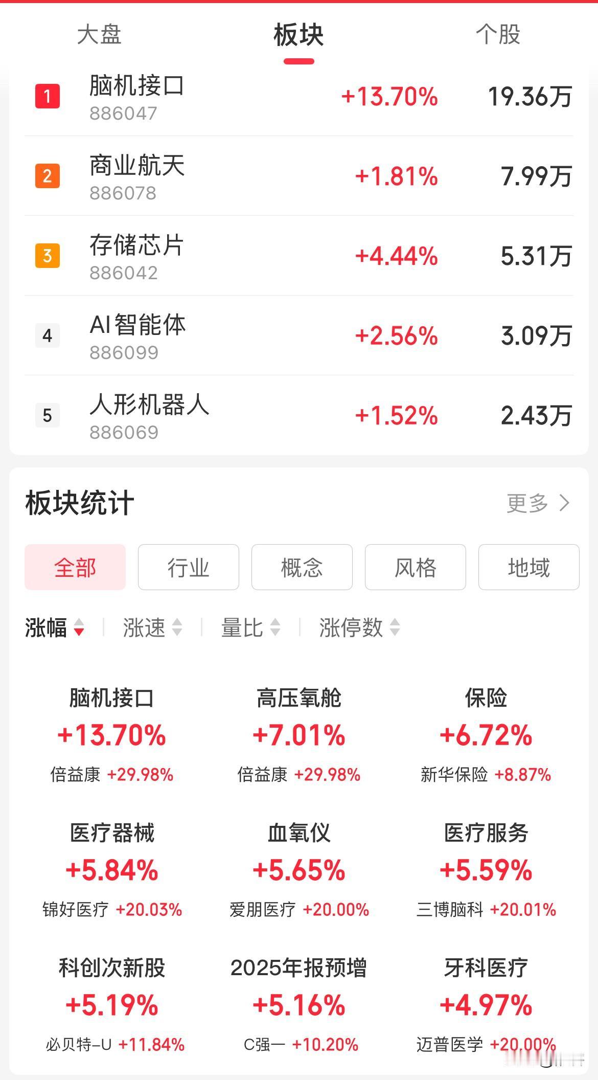 几大热门板块,到底谁能承接商业航天? 先来看趋势,就趋势而言,2026年科技主线不变,AI由基础设施转向AI应用,这是共识。脑机接口、人形机器人、智能体都属于AI运用的范围。 其次来看体量,商业航天5000多亿,昨日大爆发涨停20cm十几家的脑机接口600亿,这体量显然是不足的。再看看人形机器人3400亿、AI智能体2400亿,三个概念加一起6400亿。 所以,在接下来的春节跨年和春季行情中,三条主线齐头并进或者交替领跑有可能成为主要炒作方向。