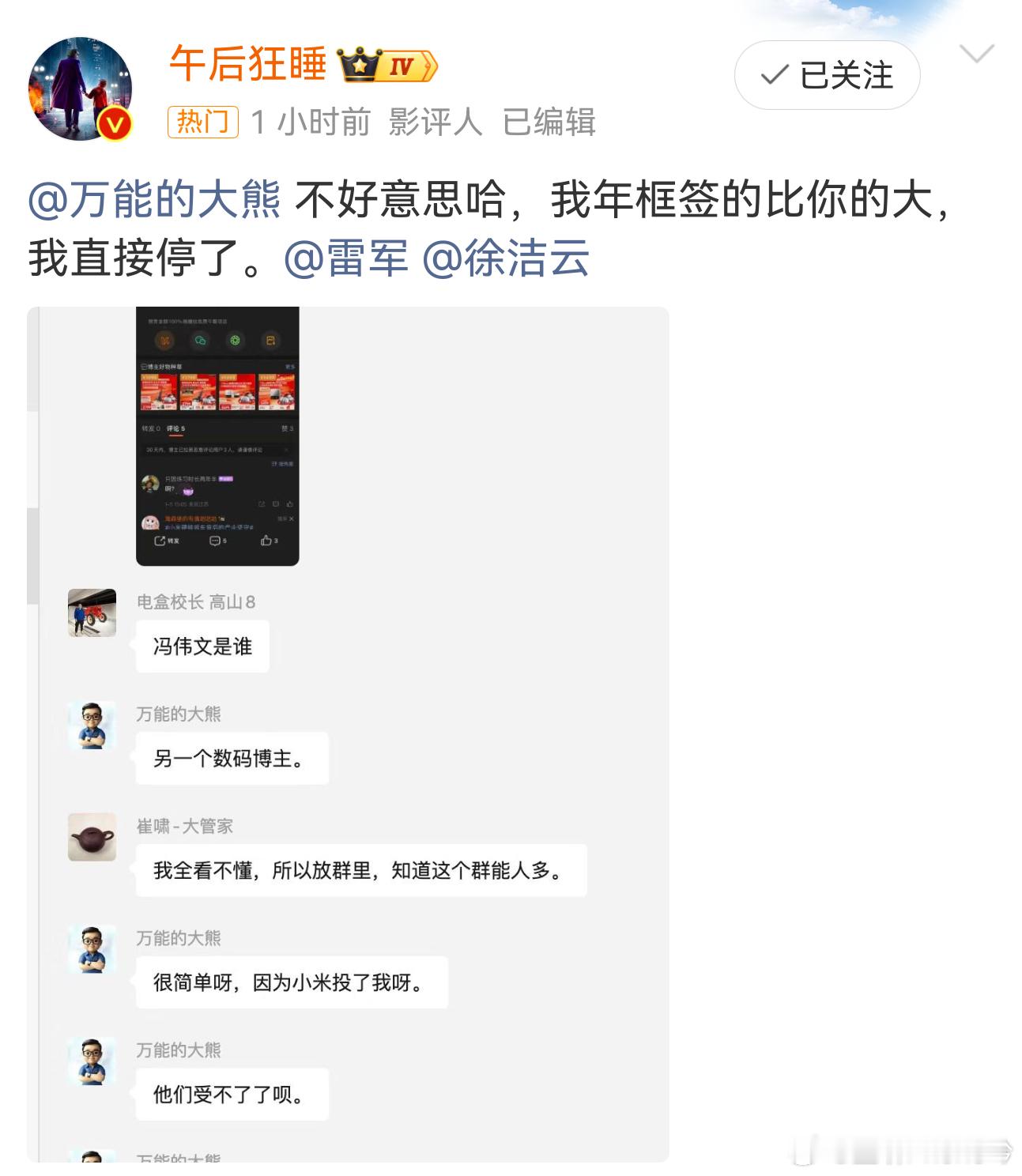 大熊 小米 理性看待吧从品牌角度说,能让更多人叫号,是传播和投放的宗旨;从媒体角度说,有新机器做首发,是维持影响力的手段;品牌有权决定投谁或者不投谁;媒体有权决定接谁或者不接谁;so,没啥好看的,散了吧。