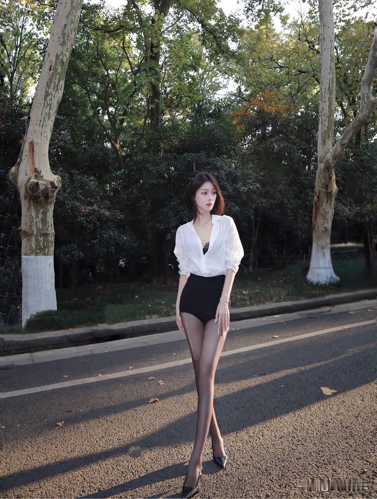 都市女郎的优雅姿态,黑白配色的经典穿搭,尽显时尚与自信。