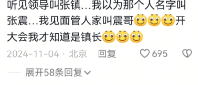 听见领导叫张镇...我以为那个人名字叫张震...我见面管人家叫震哥,开大会我才知道是镇长