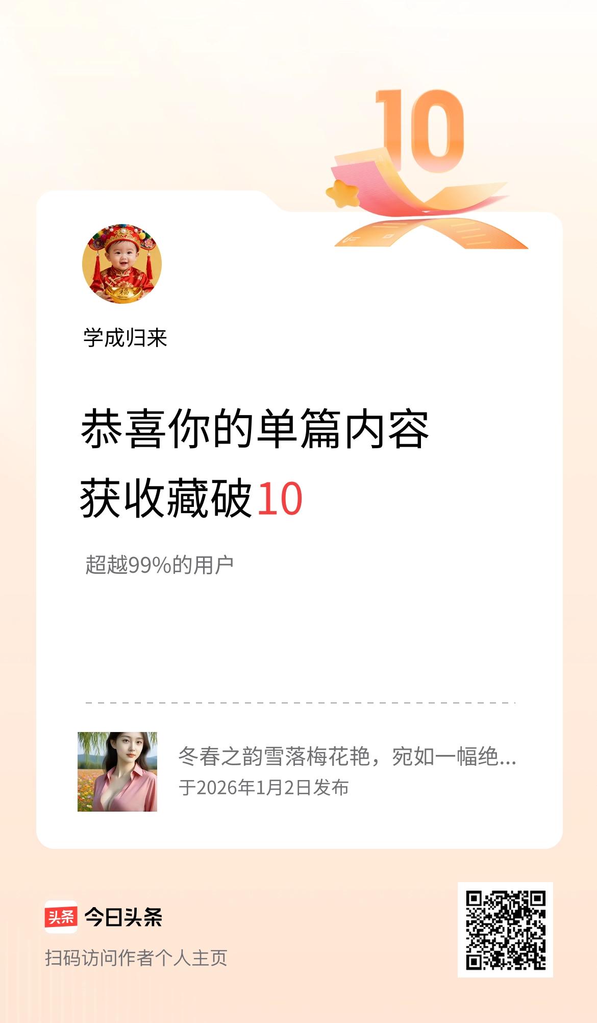 单篇内容获收藏量破10啦!