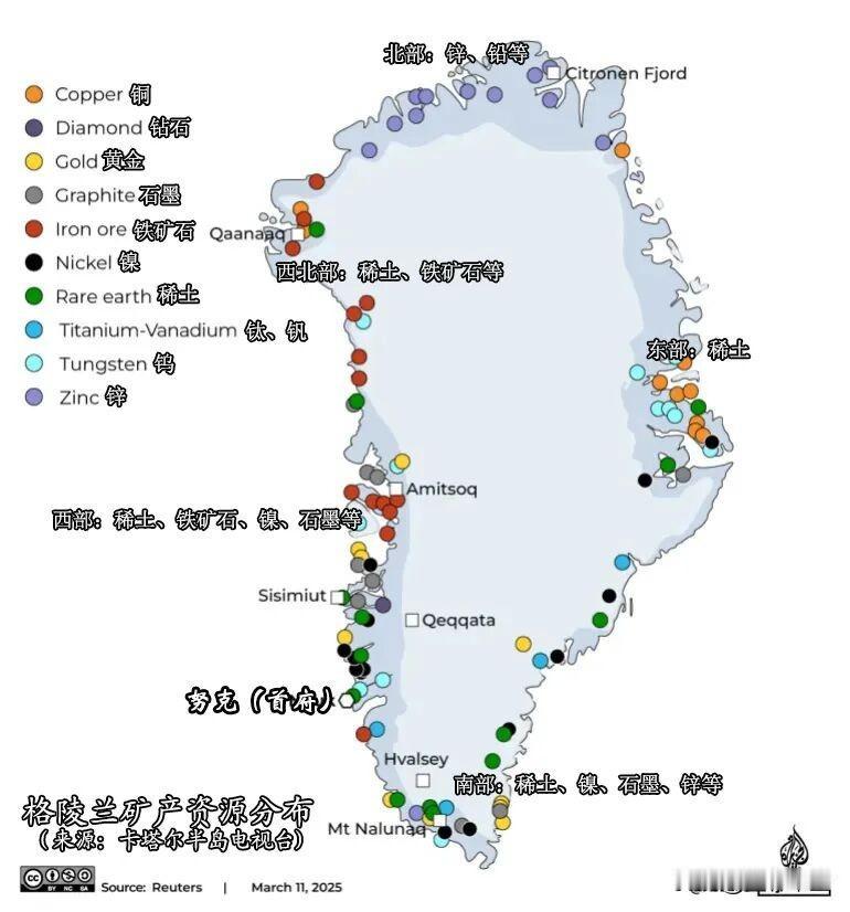 1.格陵兰岛的战略位置极为重要。它是世界第一大岛,面积约216万平方公里,扼守北极航道的关键节点,随着全球变暖导致北极冰层融化,其控制的西北航道和东北航道的商业与军事价值日益凸显。 2.该地区蕴藏着丰富的石油、天然气及稀土等战略资源,使其成为大国在北极地区博弈的焦点。划重点:石油、稀土。 3.格陵兰岛,理论上属于丹麦,但是岛上唯一的武装力量却是美国图勒空军基地。美国的逻辑,我能够,我便可以。