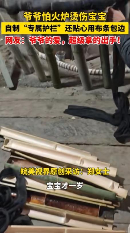 湖北恩施一名女子带1岁的宝宝回老家,由于天气寒冷,宝宝很喜欢围在火炉旁边,爷爷担心宝宝会被火炉烫到,于是亲手用竹子制作了一个防护栏,将火炉给围住,这样就可以防止宝宝碰到火炉了。 有位宝妈带着1岁的宝宝回了老家,本是想让孩子陪陪长辈,也感受下不一样的乡村生活,没成想却揪起了爷爷的心。 小宝宝年纪小,对啥都好奇,暖乎乎的火炉更是成了他的心头好,总迈着小短腿围着炉子转,小手还时不时想去碰炉壁,看着又萌又危险。 爷爷眼睛就没离开过宝宝,火炉温度高得很,孩子皮肤嫩,稍微碰到就可能烫伤,光靠盯着也难免有走神的时候,干脆一不做二不休,决定自己动手做个防护栏,把危险彻底挡在外面。 爷爷一看就是干过细活的人,说干就干不含糊,他先去屋后竹林里,挑了几根粗细匀称、够结实的新鲜竹竿,用工具小心翼翼砍下来,先把枝叶和杂刺都清理干净。 接着照着家里火炉的大小量好尺寸,把竹竿截成合适的长度,然后就开始细致加工。 他拿着刀一点点削掉竹竿的棱角,磨得圆滚滚的,就怕尖锐地方划伤宝宝;又翻出家里的细麻绳和木榫,把竹竿一根根拼起来固定好,做了个镂空的框架——既挡住了宝宝,又不耽误火炉散热,考虑得特别周到。 做完还不算完,爷爷反复检查了一遍,发现竹竿边缘还有点小毛刺,又找来旧布条,一根栏杆、一个接口地仔细缠好,把能想到的隐患全排查了一遍。 宝妈随手把这一幕拍下来发上网,很快就火了。 有网友说“这才是真疼爱,不是嘴上说说,每一步都透着用心”,也有人回忆起自己的童年,说祖辈的爱就是这样,嘴笨不会表达,却总在细节上把你护得严严实实。 还有人夸爷爷手艺好,比市面上买的成品还合心意,毕竟这是带着温度做出来的,花钱都买不到。 比起父母的爱,祖辈的疼爱往往更显细腻包容,他们不搞虚的,就用自己的经验和双手,为孙辈解决实际问题。 爷爷做防护栏的每一个动作,从选材到打磨再到缠布条,没有一句“爷爷疼你”,却处处都是疼。 现在很多人习惯用金钱衡量关爱,买最贵的玩具、最好的用品,可比起这些,这种亲手打造的守护,反而更有力量,也更让人难忘,这才是亲情该有的样子,朴素却厚重。 不管是手工做的护栏,还是花钱买的防护用品,核心都是为了孩子的安全,爷爷的举动之所以打动人,是因为里面裹着满满的亲情,但这份爱要想更稳妥,就得补上安全这一课。 其实生活里很多长辈都是这样,用自己的老方法爱孩子,心意可贵,但我们作为晚辈,要多提醒、多补充科学防护,不让暖心变成隐患。 爷爷的护栏,既是对孙辈的疼爱,也是传统手艺与亲情的碰撞,看完这事儿,你是不是也想起了家里的长辈,他们是不是也用自己的方式默默护着你? 信息来源:皖美视界