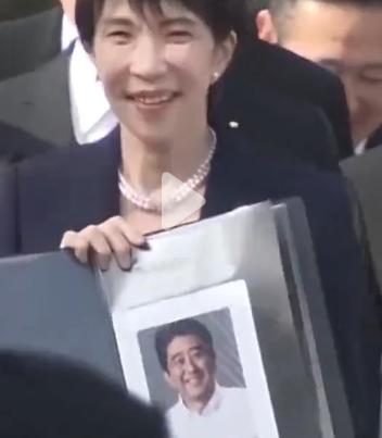 令人作呕的作秀! 高市早苗静悄悄! 必是在作妖!! 昨天举安倍画像。 参拜伊势