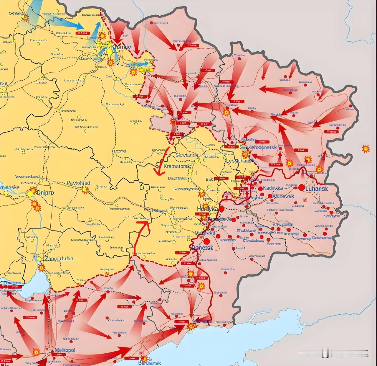 俄军逼近顿河君士坦丁罗夫卡。 俄军在冬季攻势中逐渐逼近顿巴斯双子城。 双子城由斯拉维扬斯克(北部)和克拉马托尔斯克(南部)组成,两城相距约15公里,共同构成乌东核心防御圈。 如果俄罗斯能够在夏季攻势结束前拿下双子城。那时候乌克兰再谈判,俄军的要求不会再是乌军退出顿巴斯,而是退到第聂伯河以西。