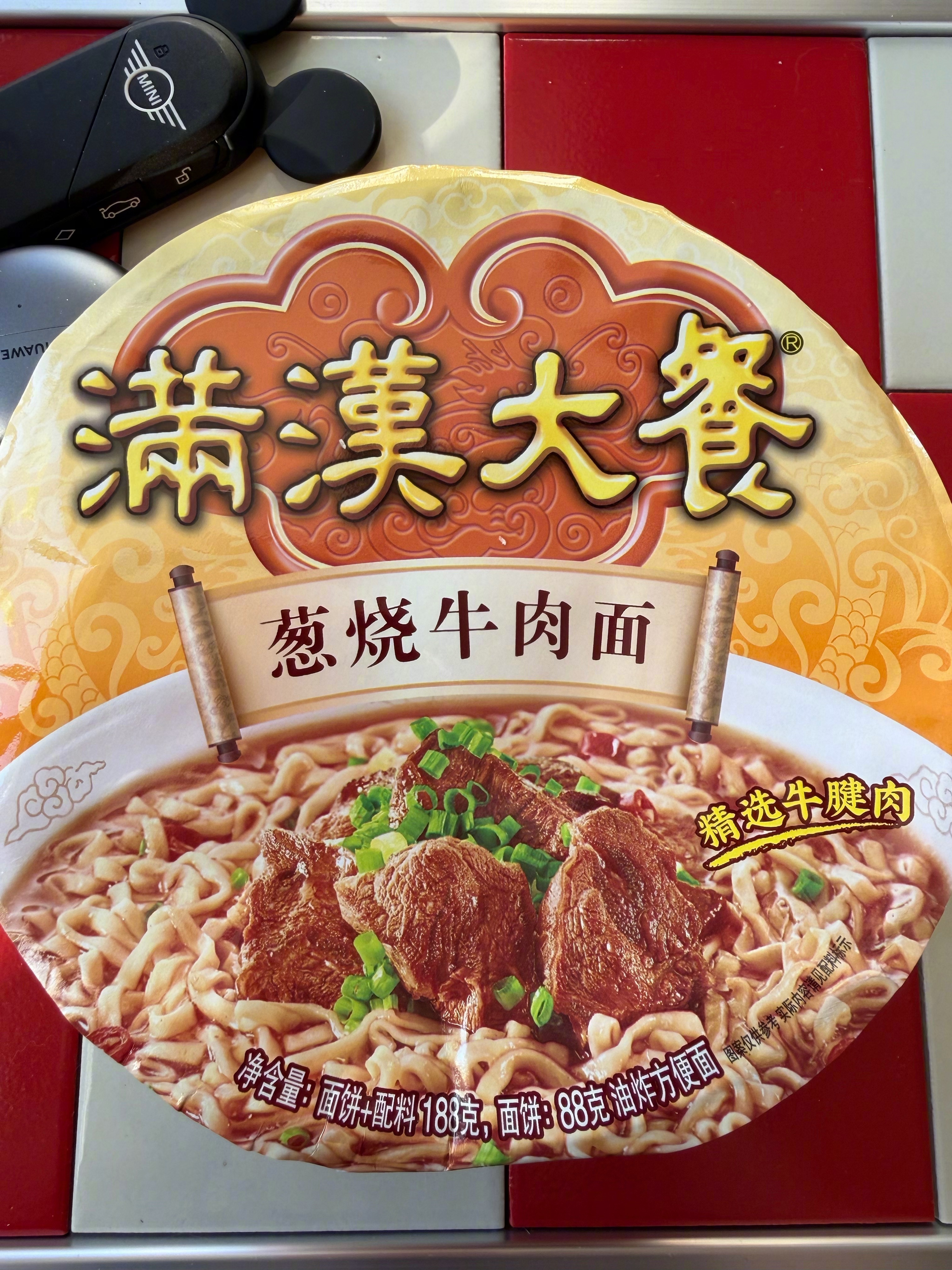 真香啊!这个满汉大餐泡面🍜前两天睡前刷到的,买了3盒试试加料的时候就给我开心坏了,牛肉大块大块滴,而且不是那种“看着像肉”的假假肉,是能看到纹理,很像家里炖出来的那种大块牛肉放料的时候觉得它调料包的沫沫有点多了,我还有点担心咸。但刚才尝了一口,一点不齁,是咸香咸香滴。牛肉本身带着卤过的味儿,但我特意把卤汁沥掉了,只留肉,还是很香!面条也不错,有厚度、有韧劲,但不是走Q弹路线的,属于比普通泡面耐嚼,但没辛拉面那么劲道~加入家中常备了,偶尔早上换换口味,幸福很高!