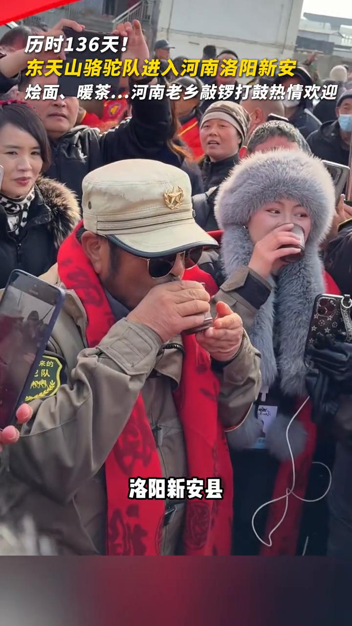 历时136天!东天山骆驼队进入河南洛阳新安,烩面、暖茶...河南老乡敲锣打鼓热情欢迎。 东天山骆驼队队长。 我们走过来了,历时136天,今天终于到了洛阳新安县,沿途的夹道欢迎的父老乡亲非常热情,我现在已经热泪盈眶了。中国传统文化,上马的饺子下马的面,到了洛阳吃到了回家的面。东天山驼队 新疆骆驼队 天山骆驼队 天山骆驼 东天山丝路驼队