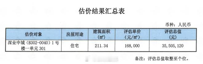 香蜜湖深业中城211平3楼2834万成交,单价13.4万。法拍,3楼,这套房原购价是2475万,朋友去参加了,说另外还有平台费3%,契税2%,非全款还有垫资费4.5%。。杂七杂八费用不少,他就放弃了。房子是中国建设银行深圳市分行副行长李华峰的(受贿罪+洗钱判了15年)。深圳