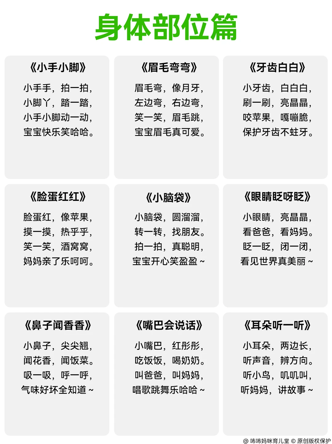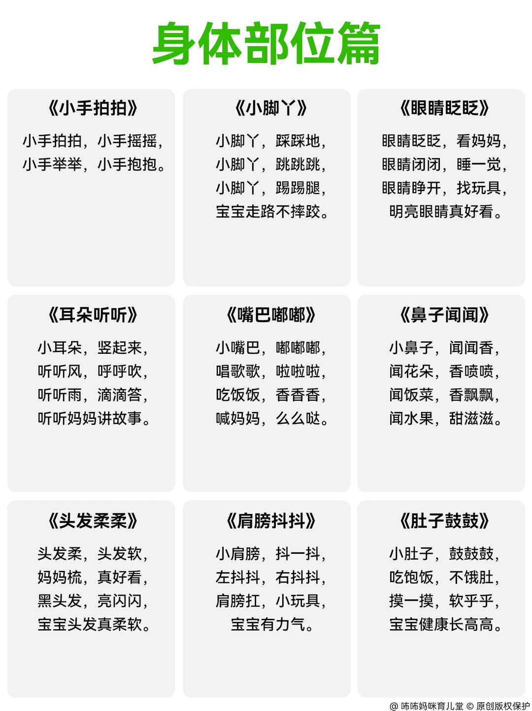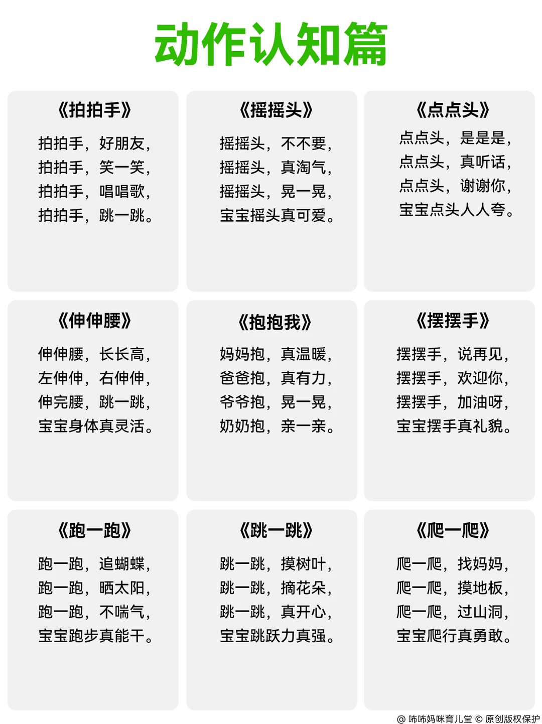 我专门做了份适合宝宝在各个场景的顺口溜,没想到不到2个月宝宝就有大进步!