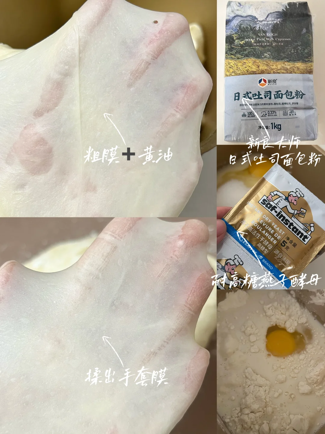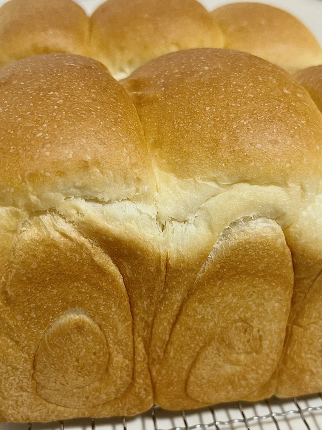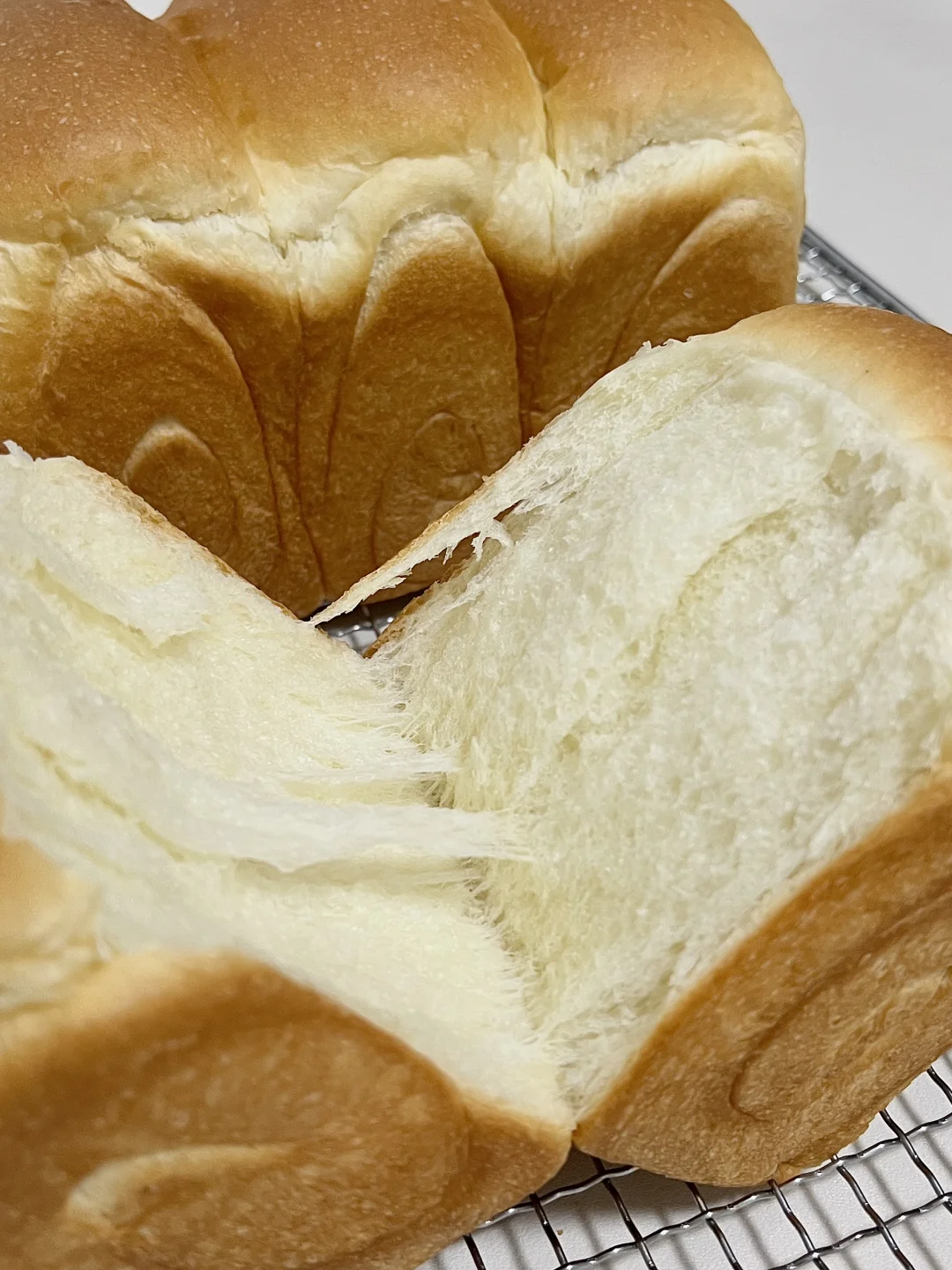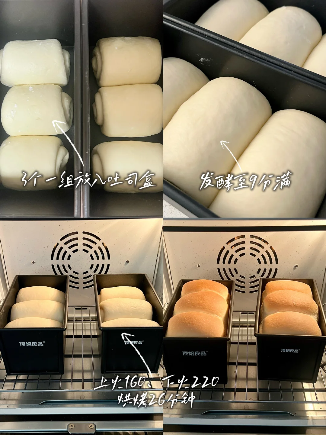 配方参考,超柔软、超好吃的配方! 配方含水量大,新手需酌情减水量! - 🍞【所需食材】 新良大师日式吐司面包粉500g|耐高糖燕子酵母5克|蛋液55克|炼乳40克|白砂糖60克|马斯卡彭奶酪140克|牛奶240克|水55克|无盐黄油15克 🍞【制作步骤】 1. 揉面:将所有材料放入厨师机,揉出透明手套膜。 2. 基础发酵:整理好面团,在28度环境下发酵1小时,至面团2倍大,用手指蘸面粉,戳进面团,不回缩不塌陷即可。 3. 分割松弛:用手掌给面团排出大气泡,然后分成6个面团,松弛15分钟。 4. 擀卷整形:松弛完毕后,将面团擀成牛舌状,翻面后分别左右向中间1/3处折叠,擀成长方形,自上而下卷起来放入顶焙450g节能吐司盒。 5. 二次发酵:将烤箱设置为35度,放入一碗温水增加湿度,把面团放入烤箱发至9分满。 6. 烘烤:上160度下220度烤26分钟。 7. 出炉:出炉后震出热气,脱模放在晾网上晾凉。
