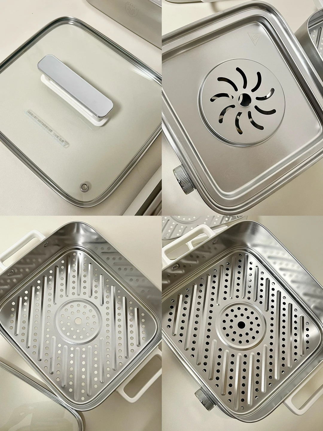 多层蒸笼设计,空间大,可同时蒸多种食物,可提前一晚预约,早上起床后,就能同时蒸好包子、玉米、鸡蛋和热牛奶,节省时间,轻松开启活力一天。