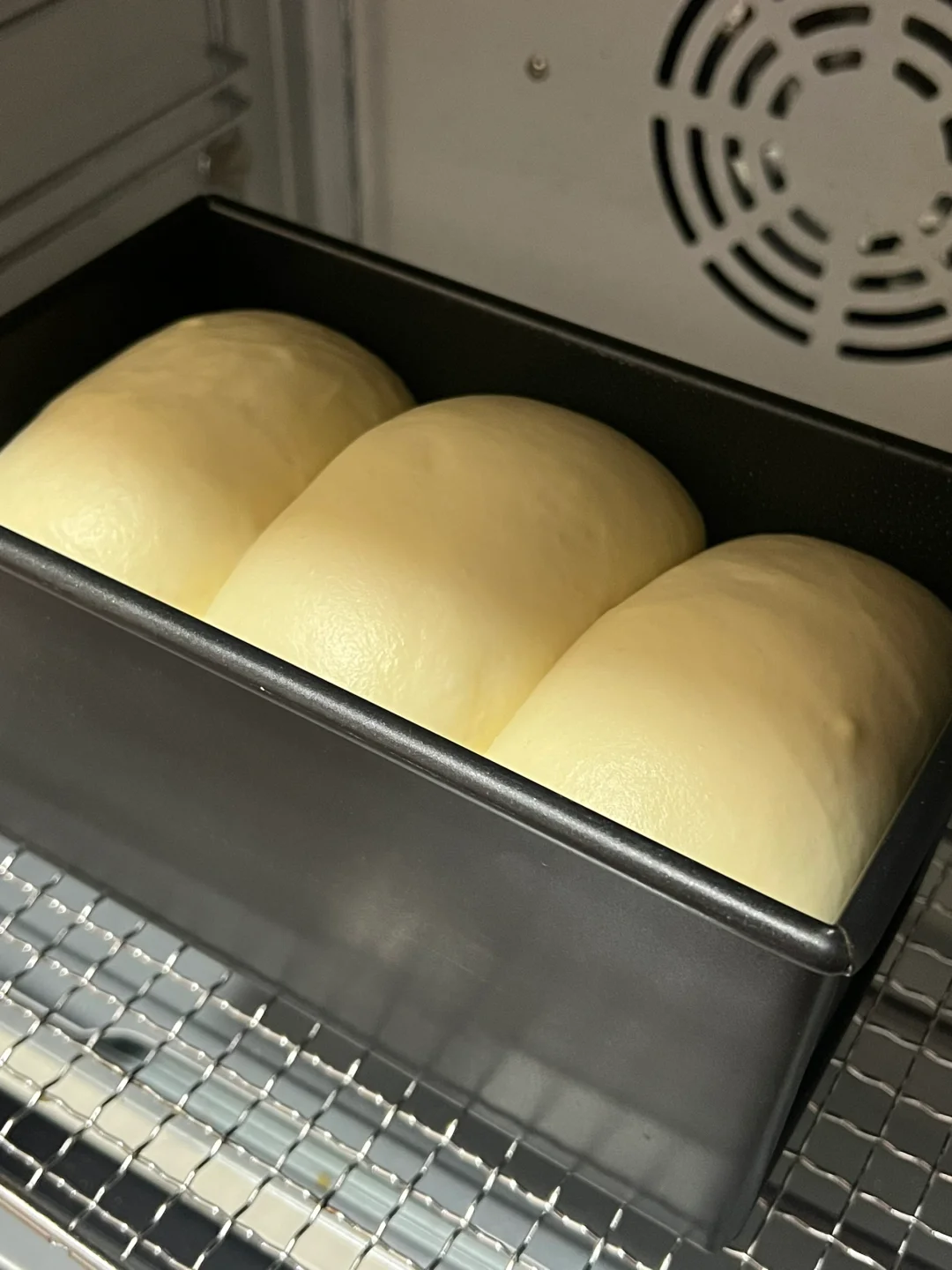 3⃣️二发温度35度,烤箱中烤盘加热水增加湿度,发酵至模具八分满