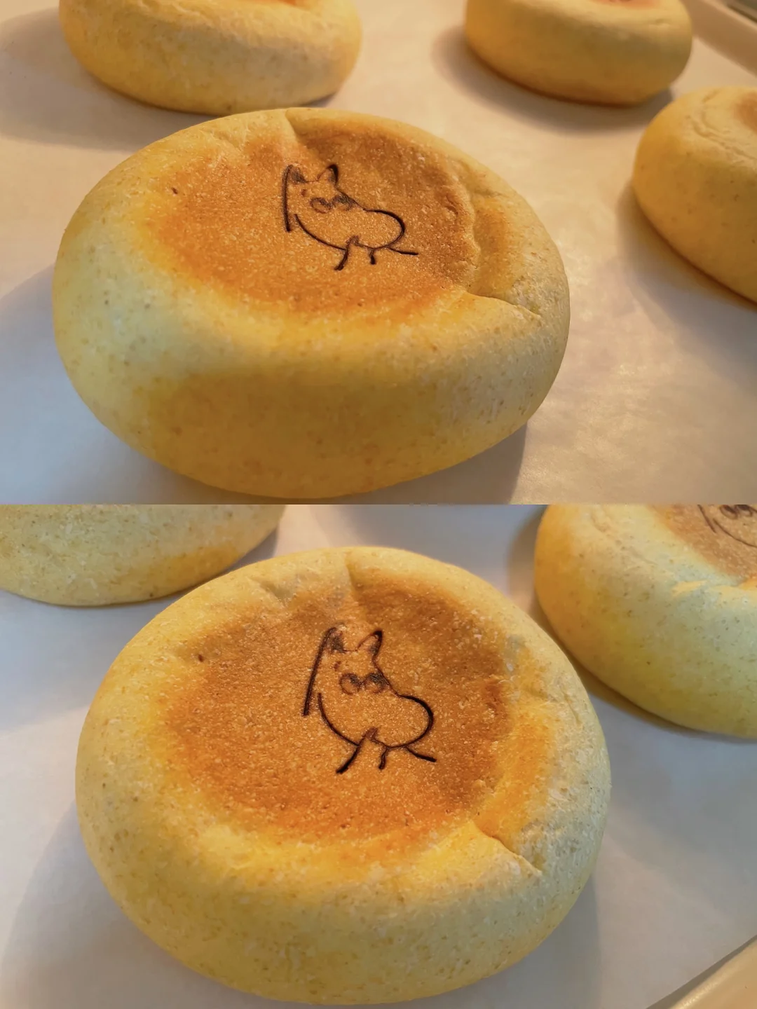 5⃣️二发至体积1.5倍大,表面放一张油纸,油纸上面压一个烤盘,送入预热好的烤箱,上火160下火190烘烤20分钟