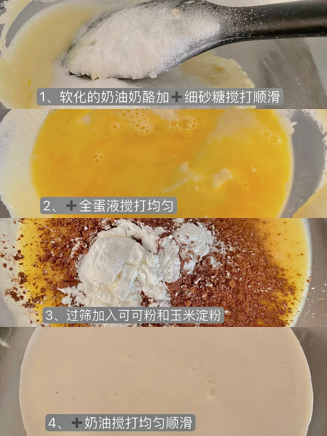 奶油奶酪150克|维益爱真38%稀奶油90克|细砂糖60克|全蛋液60克|可可粉4克|玉米淀粉6克|黑巧克力适量