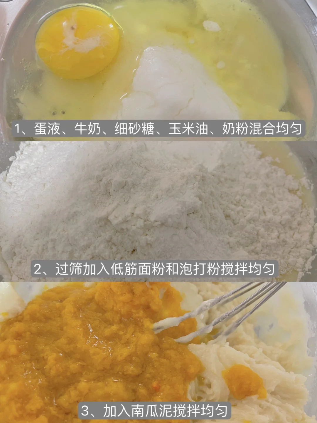3⃣️加入南瓜泥搅拌均匀