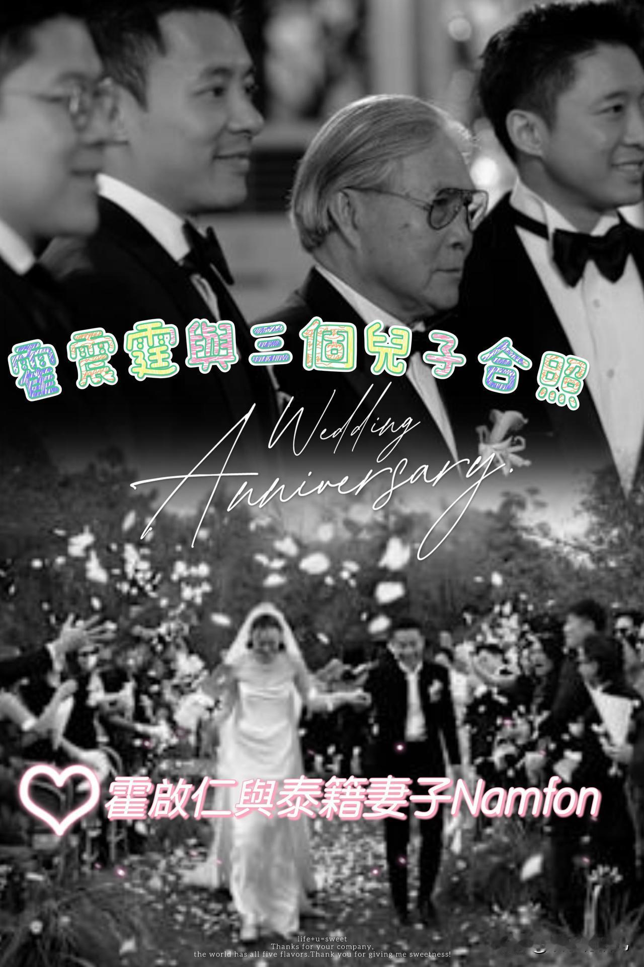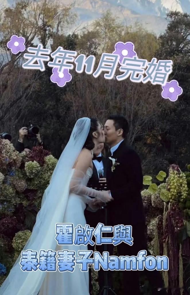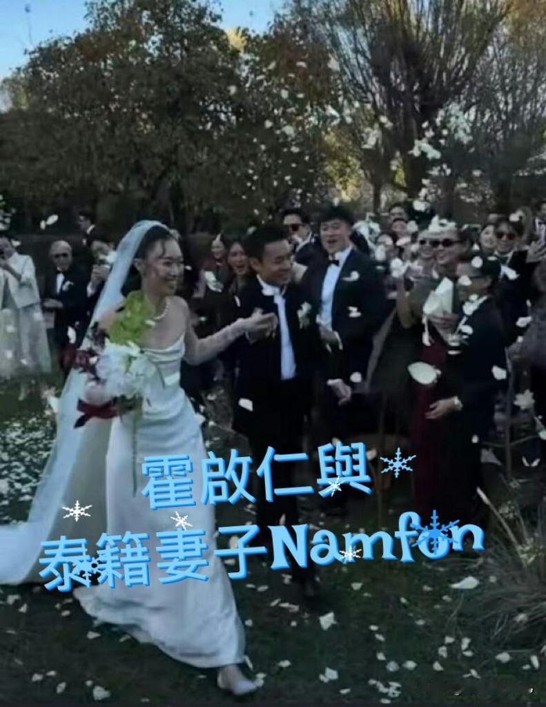 霍启刚与郭晶晶小叔霍启仁去年11月结婚,霍启仁为人低调,网上很少有两人的生活照,近日霍启仁的泰籍妻子分享几张婚礼照片出来。霍启仁与泰籍妻子Namfon 均出身于富裕之家。两人去年11月的婚礼场地,选在云南玉龙山举行,两人在此许下厮守终身的承诺,正式成为夫妇。霍启仁