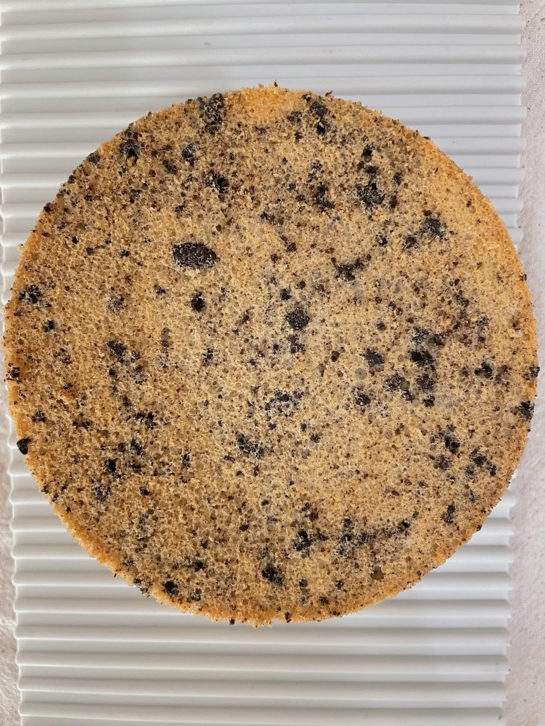 7⃣️烤好后立即从烤箱取出,摔一下震出热气,再倒扣充分晾凉(需要两小时左右),之后再脱模